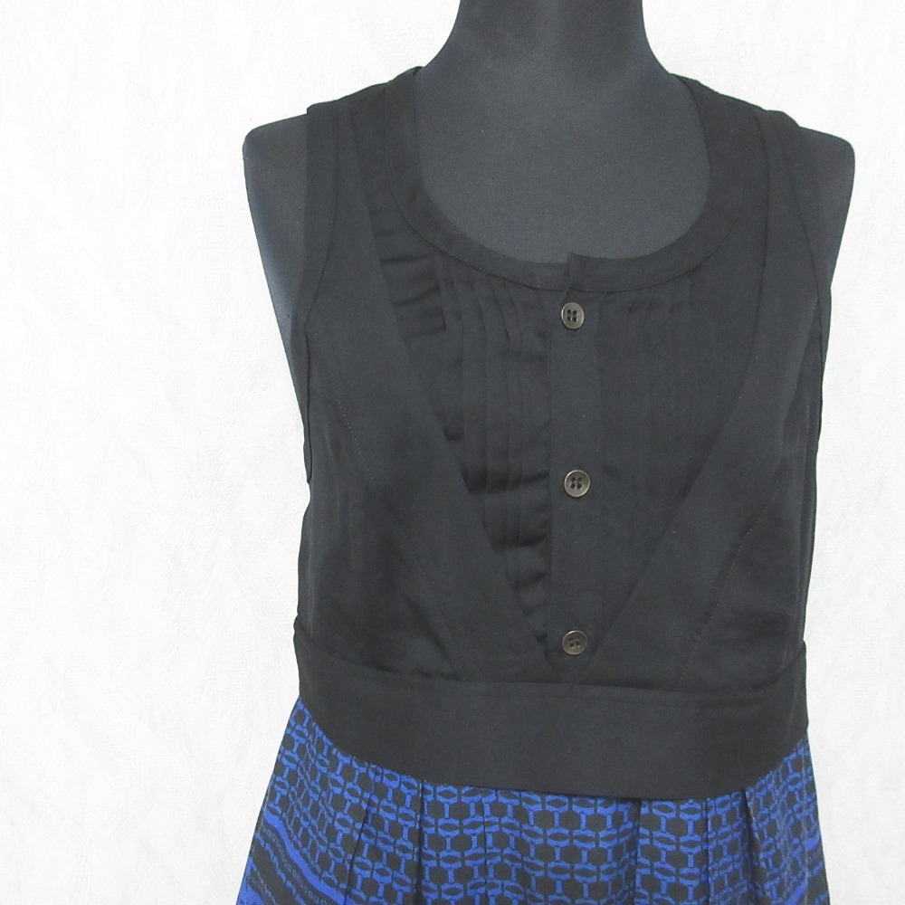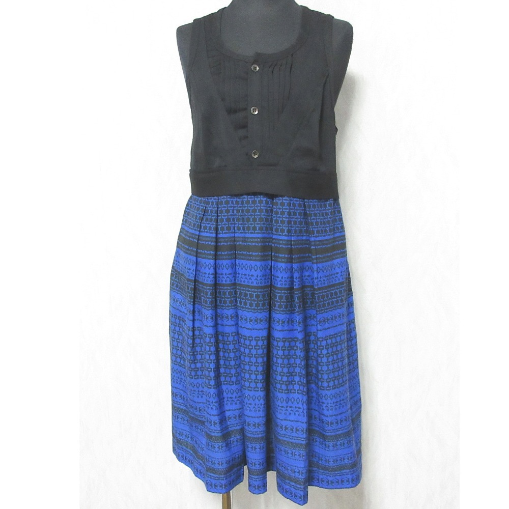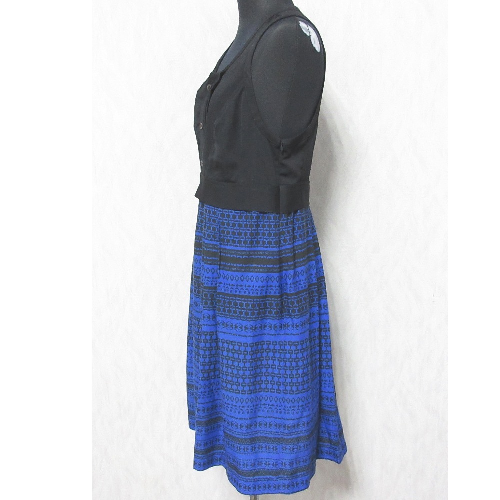 商品名:DIESEL BLACK GOLD ディーゼルブラックゴールド ノースリーブ ひざ丈 フレア コンビワンピース 38 ブラック×ブルー