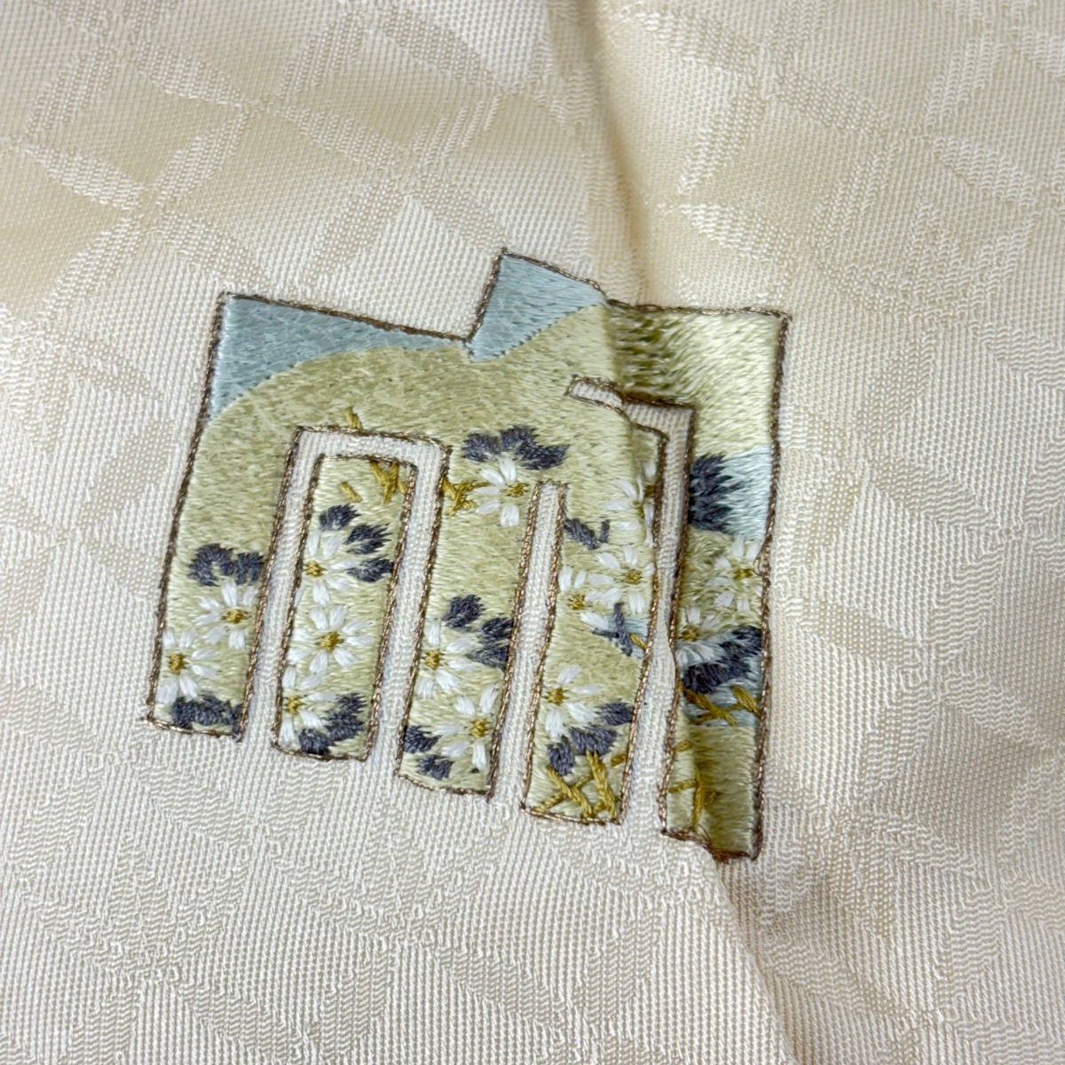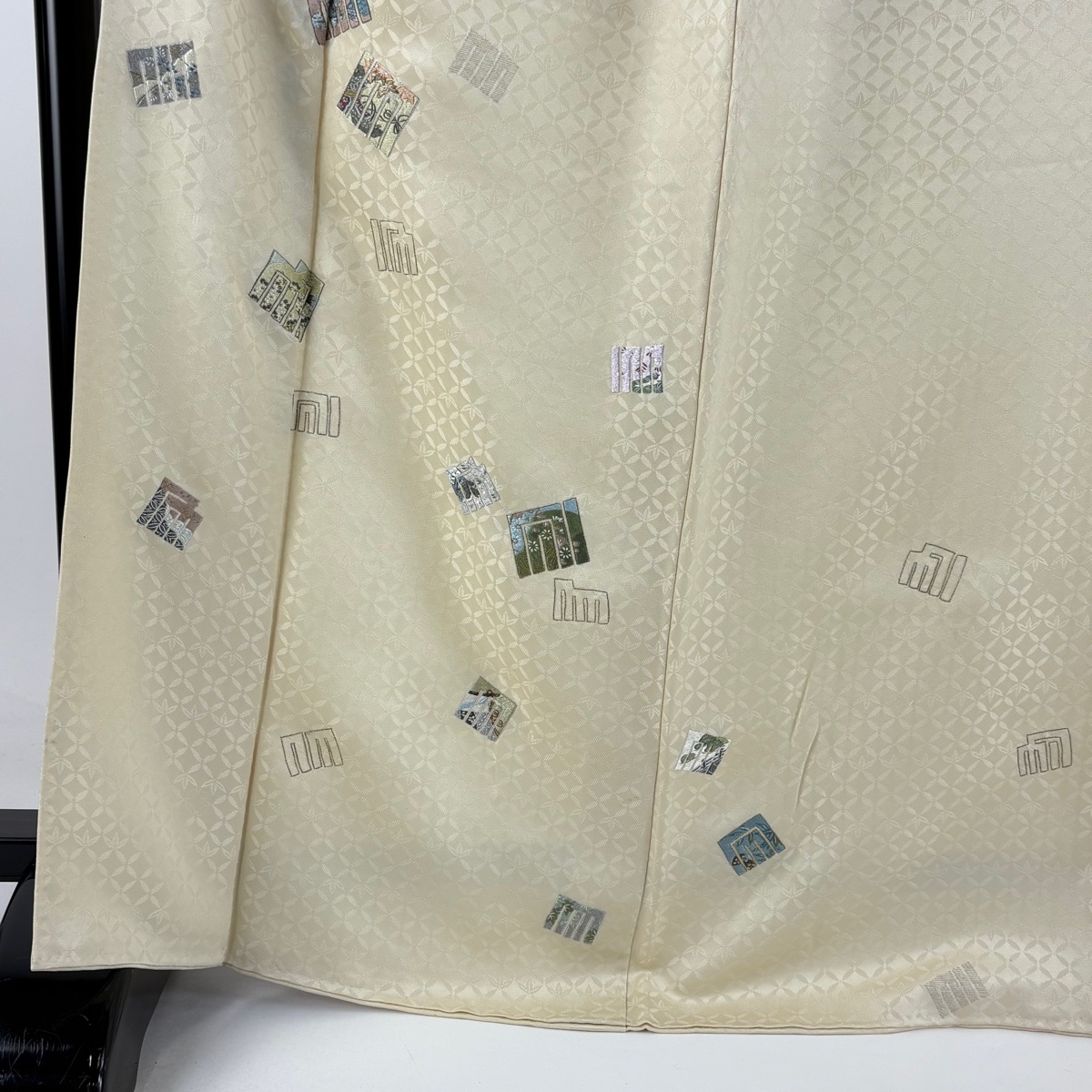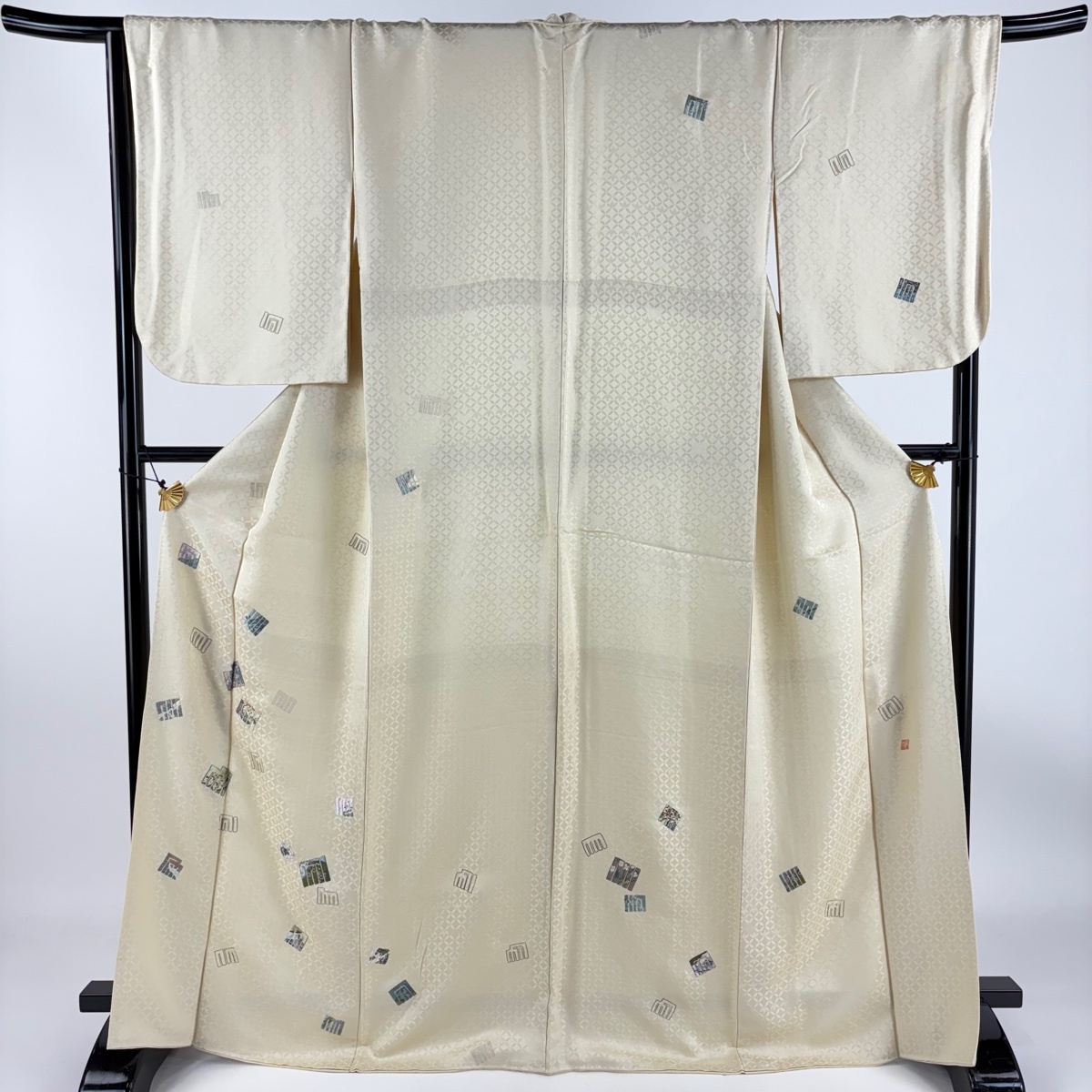 | 付下げ 逸品 落款 源氏香 七宝文 刺繍 金銀糸 ベージュ 袷 身丈166 裄丈67 M 正絹 【中古】 |