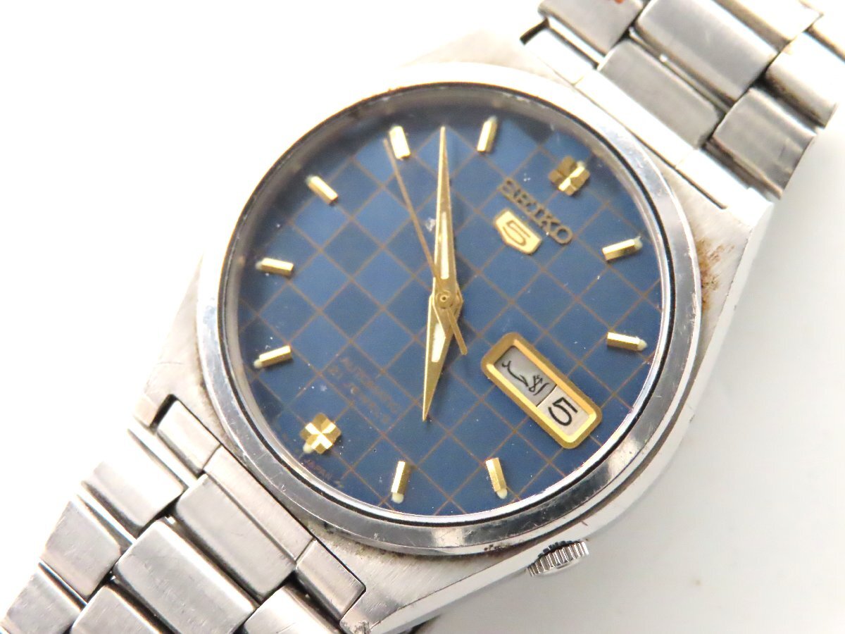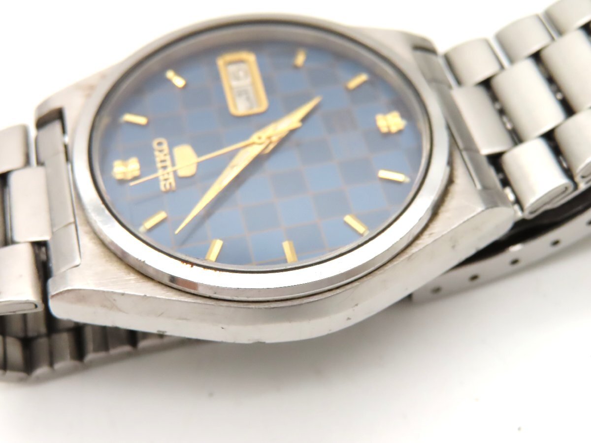 1円 セイコー 7019-8180 セイコー5 SS ブルー文字盤 ボーイズ 稼働 AT 24069 NRL
