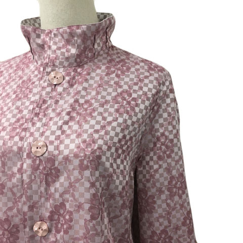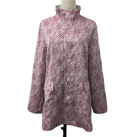 レジァンス REGENCE コート スタンドカラー リバーシブル チェック 花柄 長袖 42 ピンク 白 ホワイト レディース