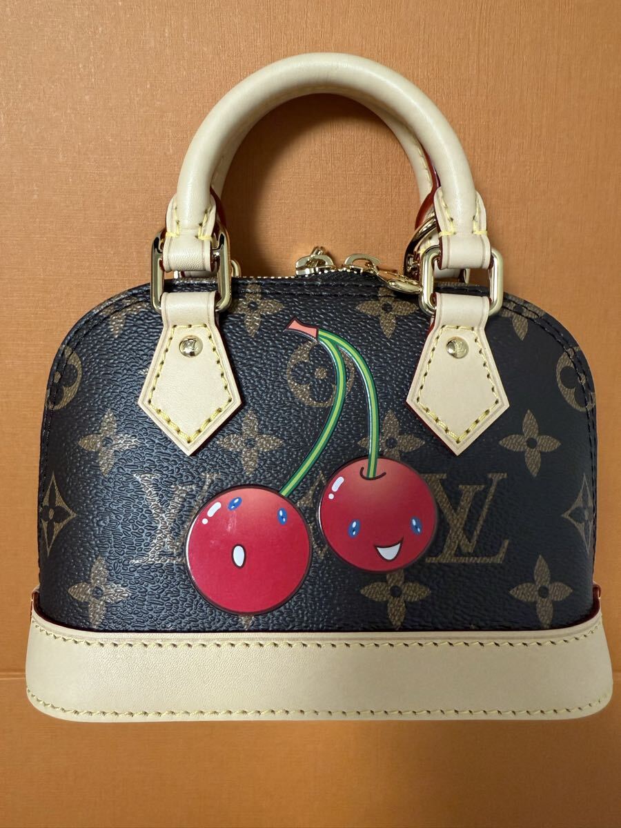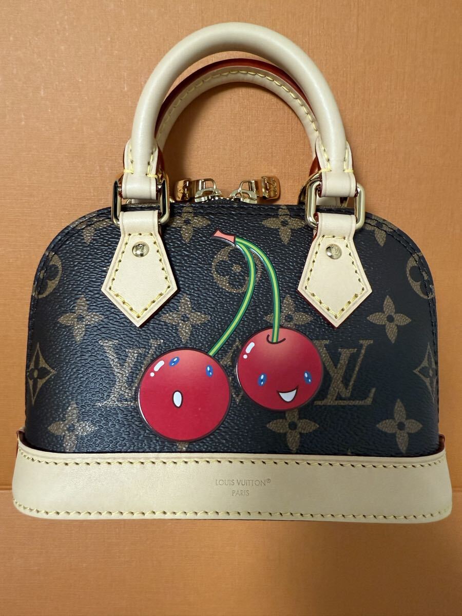 小ぶりのサイズにデザインされた、プレイフルなエスプリ薫る「LV × TM ナノ・アルマ」。「ルイ・ヴィトン × 村上隆」リエディション・コレクション第3章ならではの遊び心溢れるチェリー・モチーフでアップデートしたアイテムです。モノグラム・キャンバスにヌメ革のトリミングを施し、メゾンのクラシックなコードを表現したバッグは、トップハンドルや取外し & 調節可能なストラップなどがあしらわれ、多彩な持ち方が可能に。コンパクト財布や大きめのスマートフォンなどの普段の必需品を収納できます。