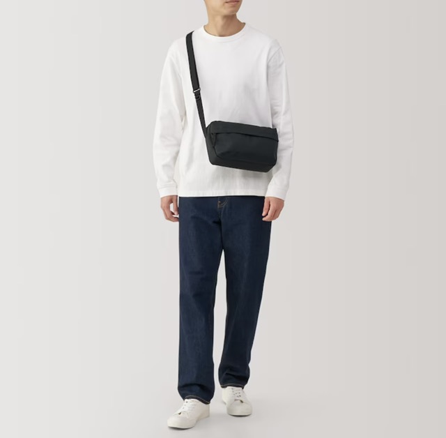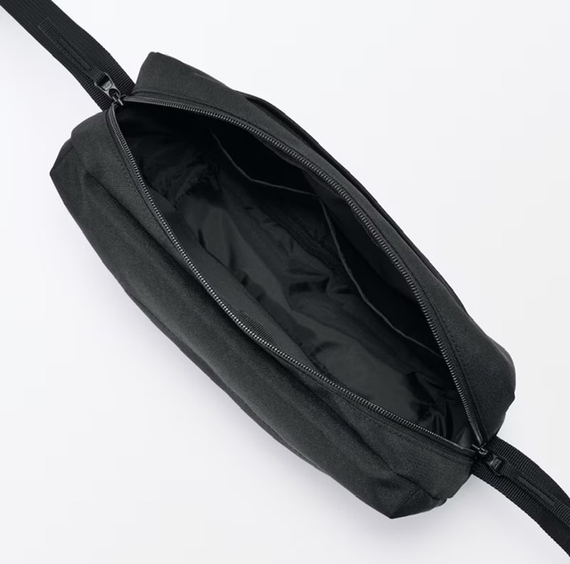 新品★ MUJI 男女兼用 ショルダーバック 撥水加工 スマホの出入れ簡単 ユニセックス斜め掛けバック 黒 ウェストポーチ 自宅保管 早期終了可