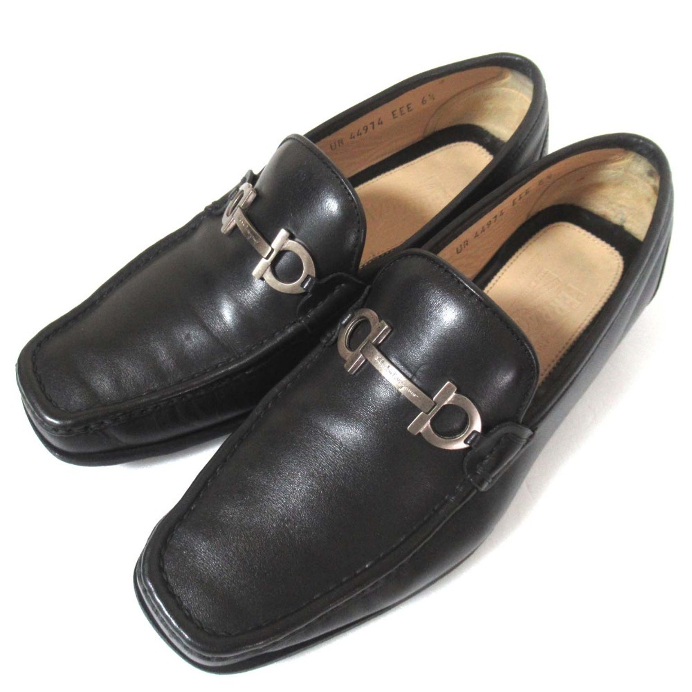 商品名:Salvatore Ferragamo サルヴァトーレフェラガモ ガンチーニビット レザー ローファー 6.5EEE 24.5cm相当 ブラック シルバー金具