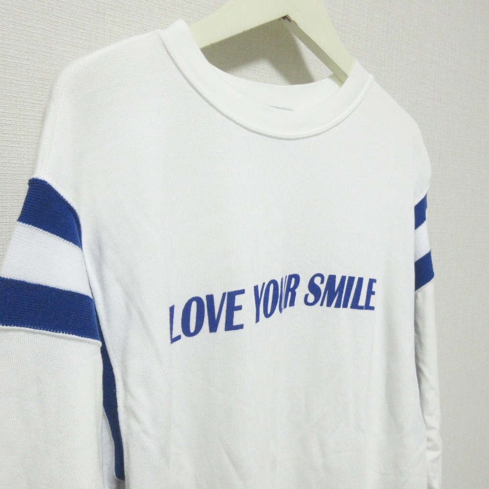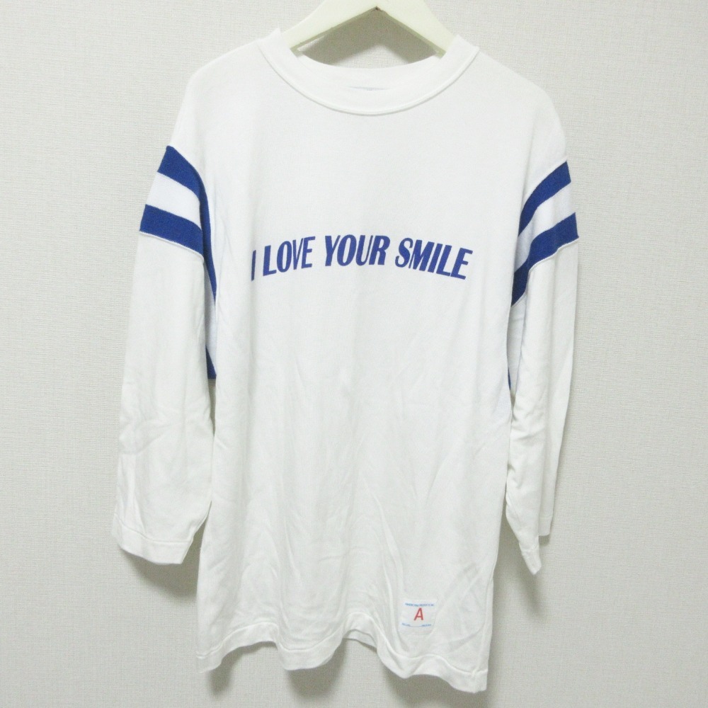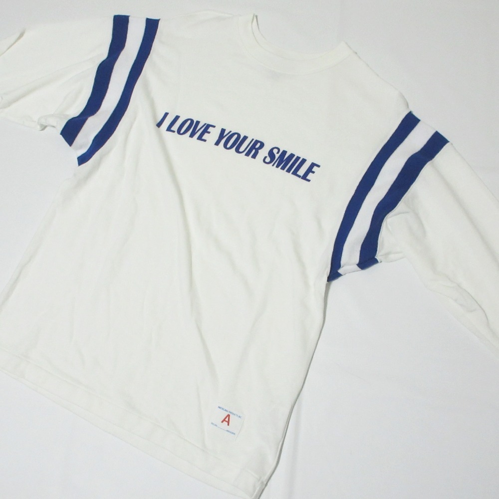 美品 AMERICANA アメリカーナ リヨセルコットン袖切り替えライン フットボールTEE 七分袖 カットソー プルオーバー ホワイト