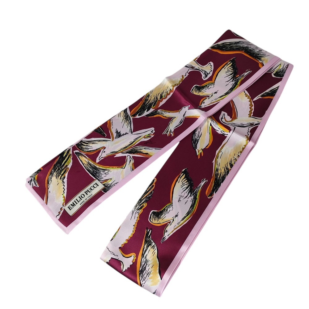 商品名:EMILIO PUCCI エミリオプッチ シルク100% 鳥柄 バード スカーフ ボウタイ ボルドー×ピンク