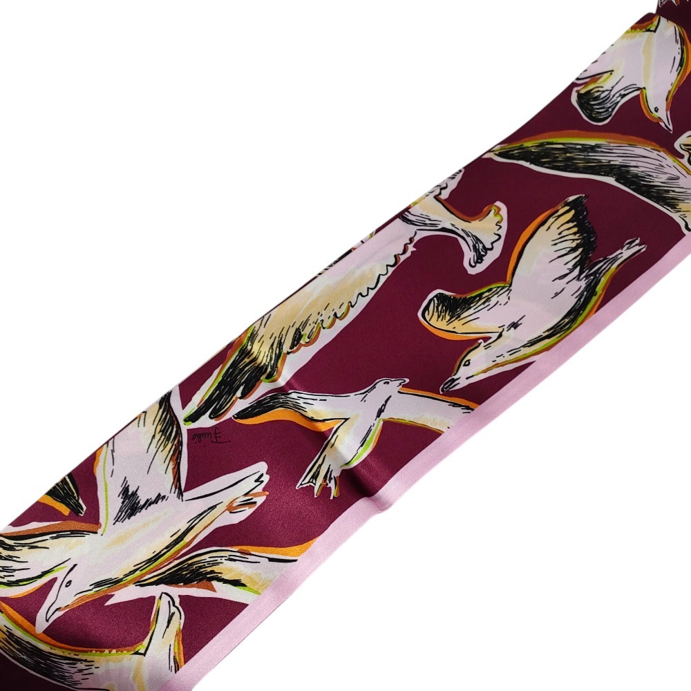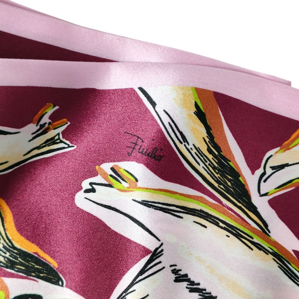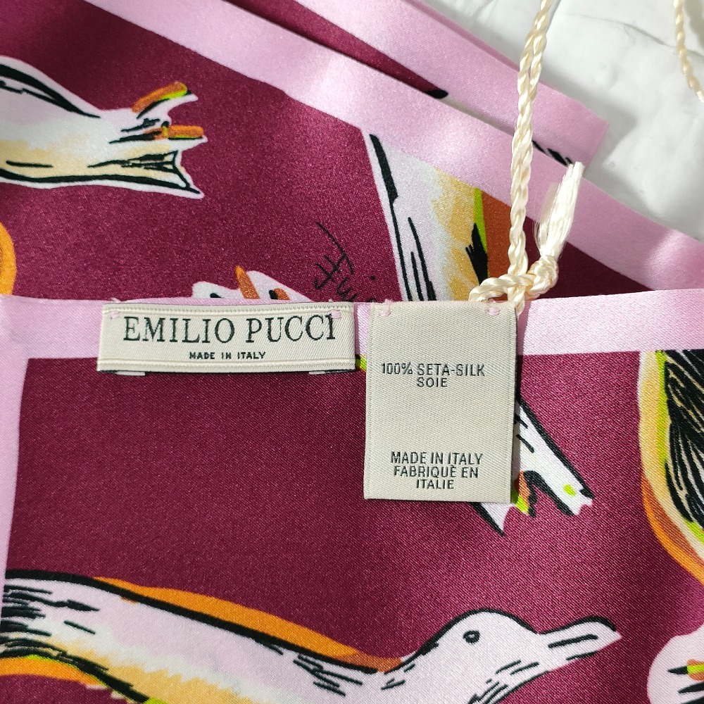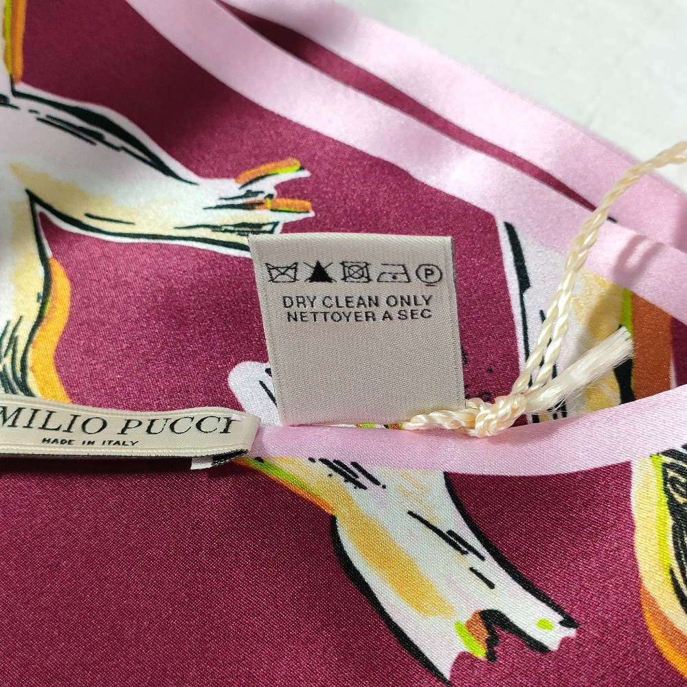 未使用 EMILIO PUCCI エミリオプッチ シルク100% 鳥柄 バード スカーフ ボウタイ ボルドー×ピンク