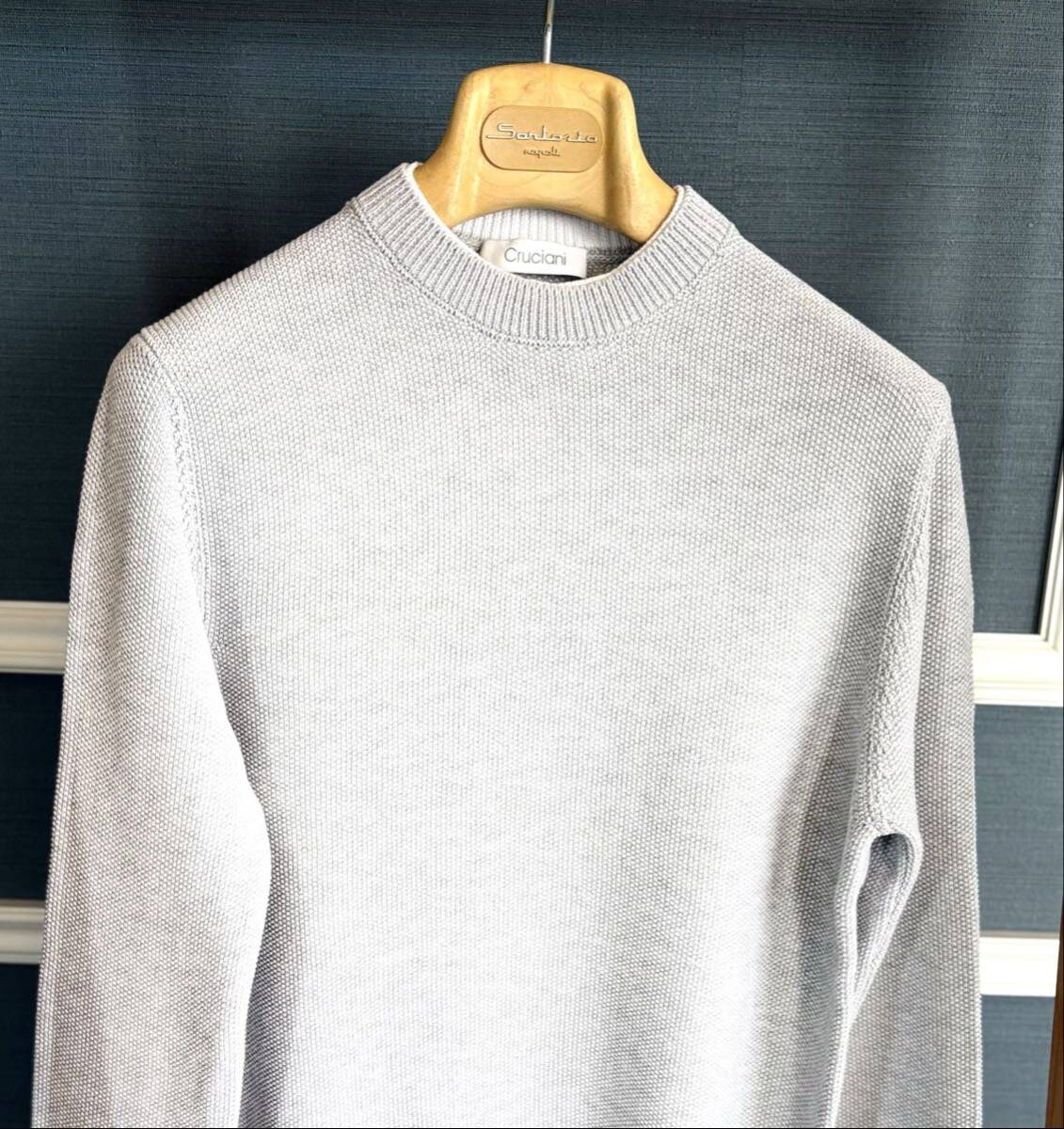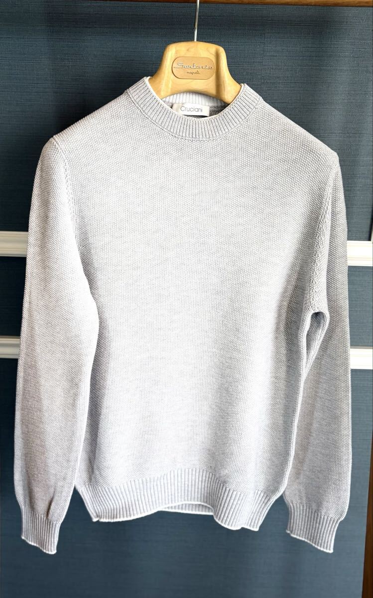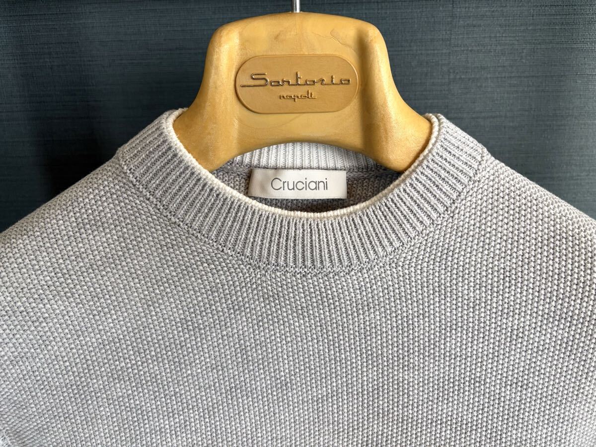 商品名: クルチアーニ(Cruciani)、コットンクルーネックニット、ライトグレー、サイズ44、ミドルゲージ、春夏アイテム本物