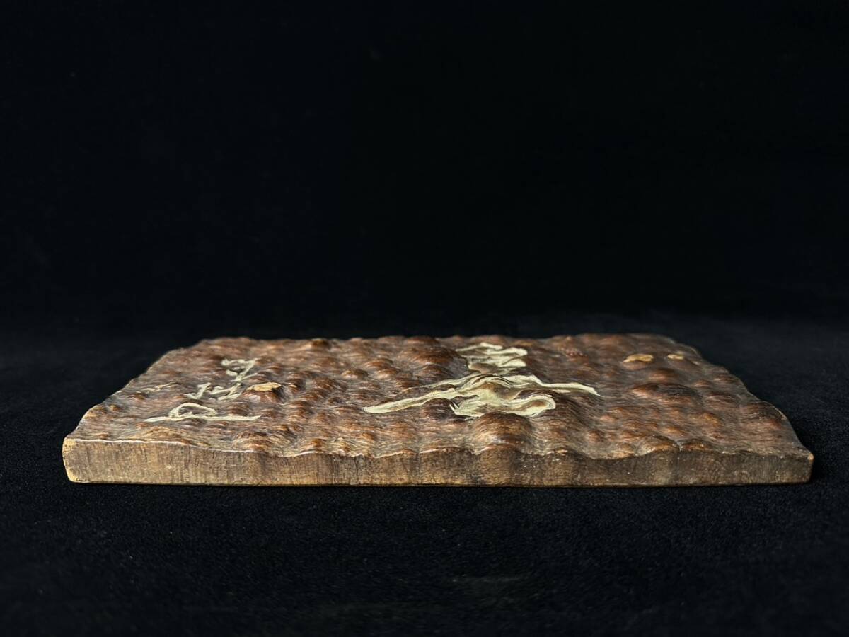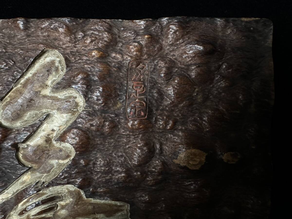 コレクター買取品 扁額 木彫 在銘 プレート 木製 木造 飾物 置物 落款 時代物 骨董品 古美術