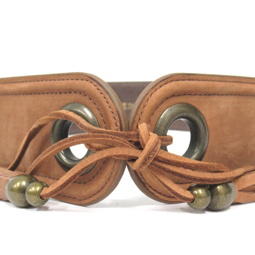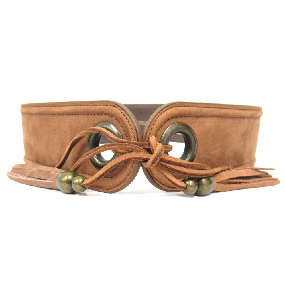 23区 オンワード樫山 レザー ワイド ベルト タッセル 大きいサイズ 茶 ブラウン