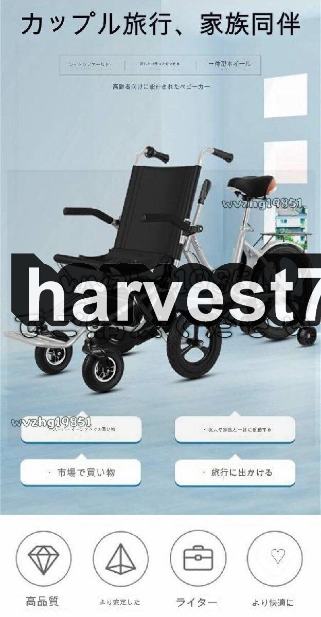 大人用高齢者用三輪車、高炭素鋼ボディ、軽量で持ち運びが簡単な3輪プッシュバック付き車椅子スタイル乗用カート、三輪車ベルト