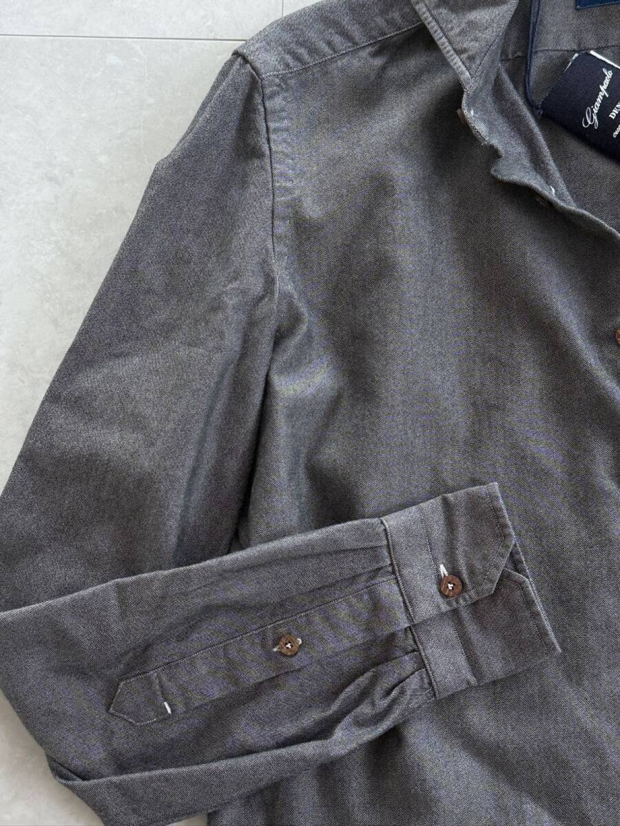 ナポリのシャツ専業ブランド Giampaolo(ジャンパオロ) より登場する「ホリゾンタルカラーシャツ」は、クラシコイタリアの伝統を踏まえつつ、現代的な感性を取り入れた洗練の一枚です。本作の最大の特徴は、襟羽根が水平に近く開く“ホリゾンタルカラー”。タイドアップすれば結び目を小さく端正に収め、ノータイで着用すれば胸元を自然に引き立てる、オン・オフ兼用の万能デザインとなっています。 素材には滑らかで上質なコットンを採用し、柔らかな肌触りと快適な着心地を実現。ナポリ仕立て特有の立体的なカッティングは、肩から胸にかけて自然に馴染み、動きに合わせて優雅にフィットします。ジャケットのインナーとしても美しく収まり、一枚で着ても上品さを漂わせる絶妙なバランス感覚が魅力です。 そして見逃せないのが、ディテールに宿る個性。ボタンには天然素材である コルク を採用し、環境に優しいエシカルな選択でありながら、ナチュラルな質感がシャツ全体に温もりと奥行きを与えています。通常の白蝶貝や樹脂ボタンにはない柔らかな風合いが、シンプルなシャツにさりげない表情を添え、日常のスタイルをより豊かに演出してくれます。 カジュアルにはチノパンやデニムと合わせて、リラックス感のある大人の装いに。ビジネスカジュアルではウールパンツやジャケットと組み合わせ、洗練された印象を際立たせることができます。クラシックでありながらモダン、シンプルでありながら個性的――このバランスこそがジャンパオロの真骨頂。 エレガンスと実用性を兼ね備え、さらにサステナブルな視点を加えた「ホリゾンタルカラーシャツ・コルクボタン仕様」。日々のワードローブに新しい価値をもたらす、確かな一枚です。 ブランド:Giampaolo / ジャンパオロ 素材:コットン100% サイズ:39 着丈:77cm 袖丈:66cm 肩幅:44cm 身幅:57cm ※迅速なお取引を心がけさせていただいております。オークション終了より24時間以内にご連絡をいただけない場合、土日祝日を除き48時間以内にお支払い手続きをいただけない場合は、お取引の意思なしと判断させていただき取引キャンセルとさせていただきます。 万が一上記が不可の場合は事前にご連絡いただくか、入札をお控えいただきますようお願い申し上げます。 ※なるべく現物に近いお色味で撮影するよう心掛けておりますが、閲覧環境の違い等によって違いが出る場合があります。 差し替えトラブルを避ける意味でも上述した旨含め、イメージと違う等での返品は受け付けておりません。 百貨店並みのサービスを求める方や神経質な方の入札はお控えいただきますようお願い申し上げます。 また、差替えやSNS使用後の返品等を防止するためためにも、原則返品には応じられません。 疑問点や心配事等がある場合は入札前に質問欄にてお問い合わせください。 ※当方が出品するすべての商品は間違いなく本物ブランド品となりますので、安心してオークションにご参加ください。 万が一、第三者等により偽物と判断された場合、商品の返品、お支払いただきました全額を返金をいたします。 |
