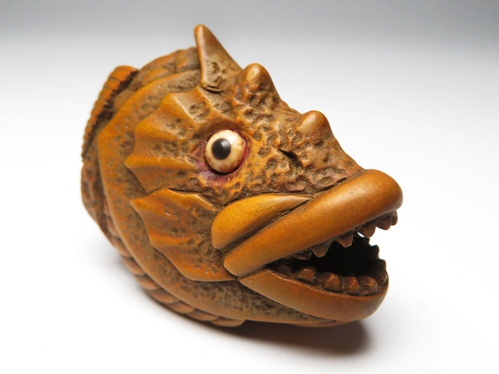 ●明治期 堤物 木製 魚の頭 置物になります。古い物ですが極力状態の良い作品を出品しておりますので是非ご覧ください。