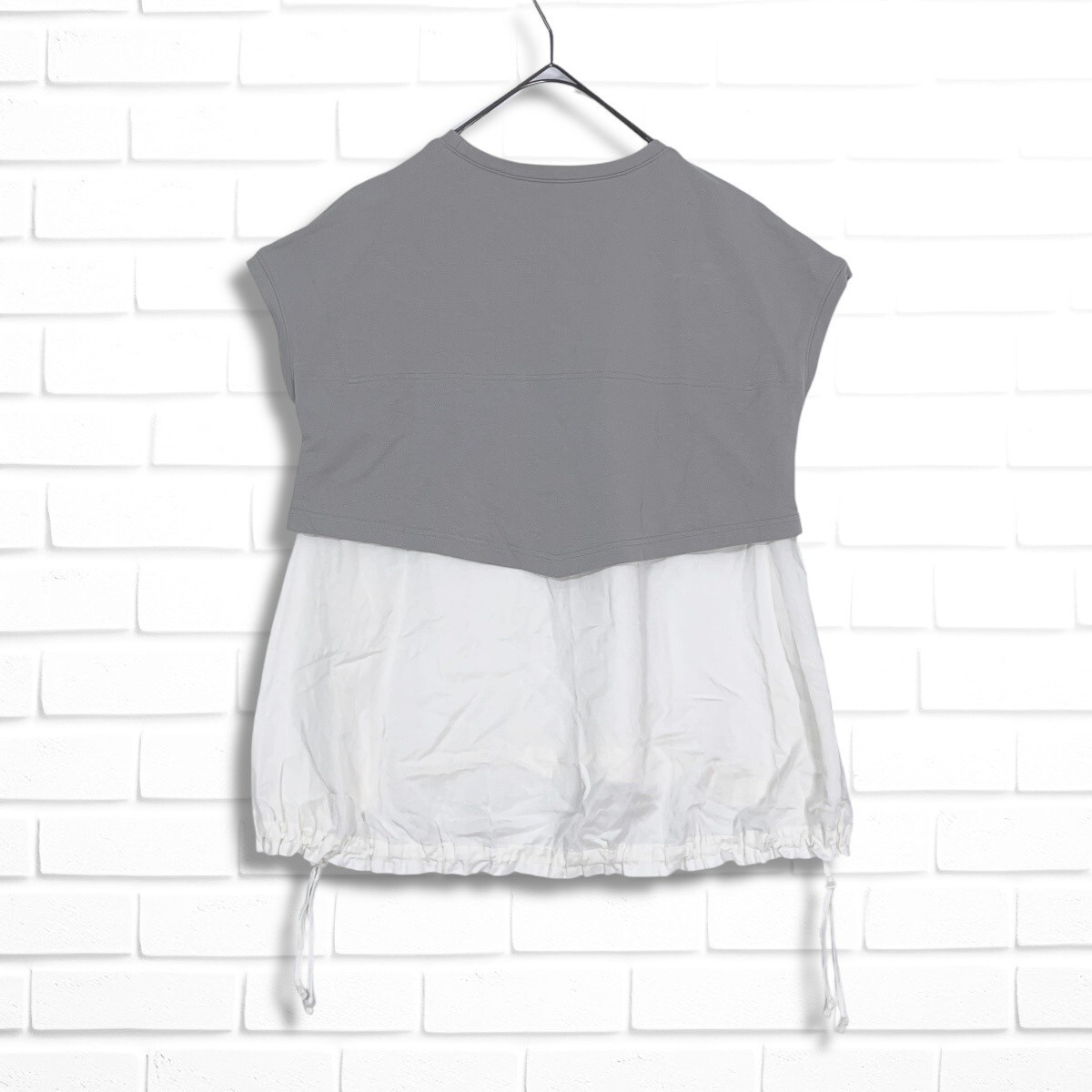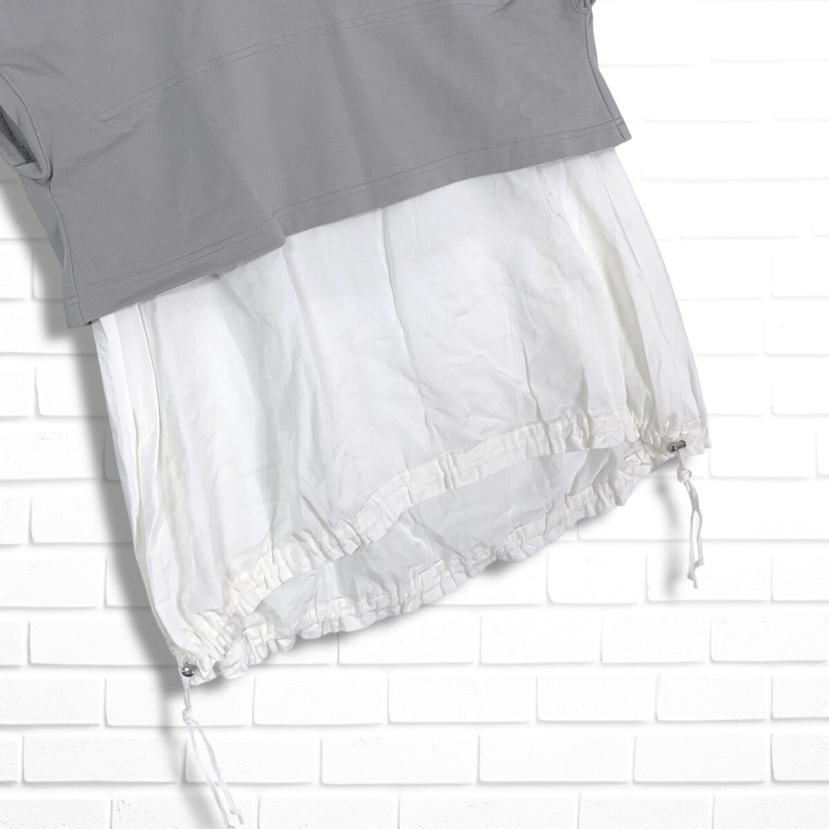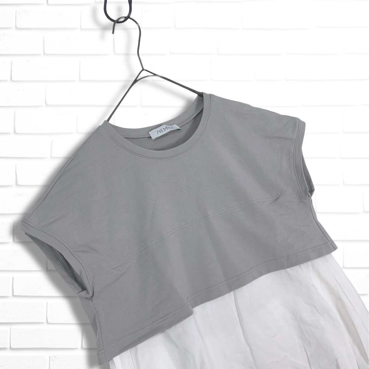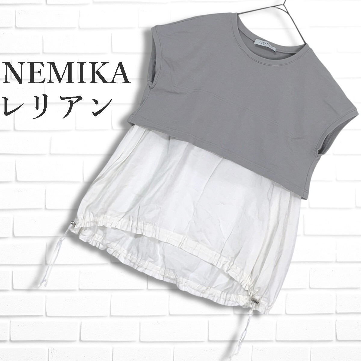 ◆良品◆ NEMIKA ネミカ レリアン レイヤード デザイン ゆったり♪ プルオーバー ブラウス トップス グレー × 白 レディース 3035H◎