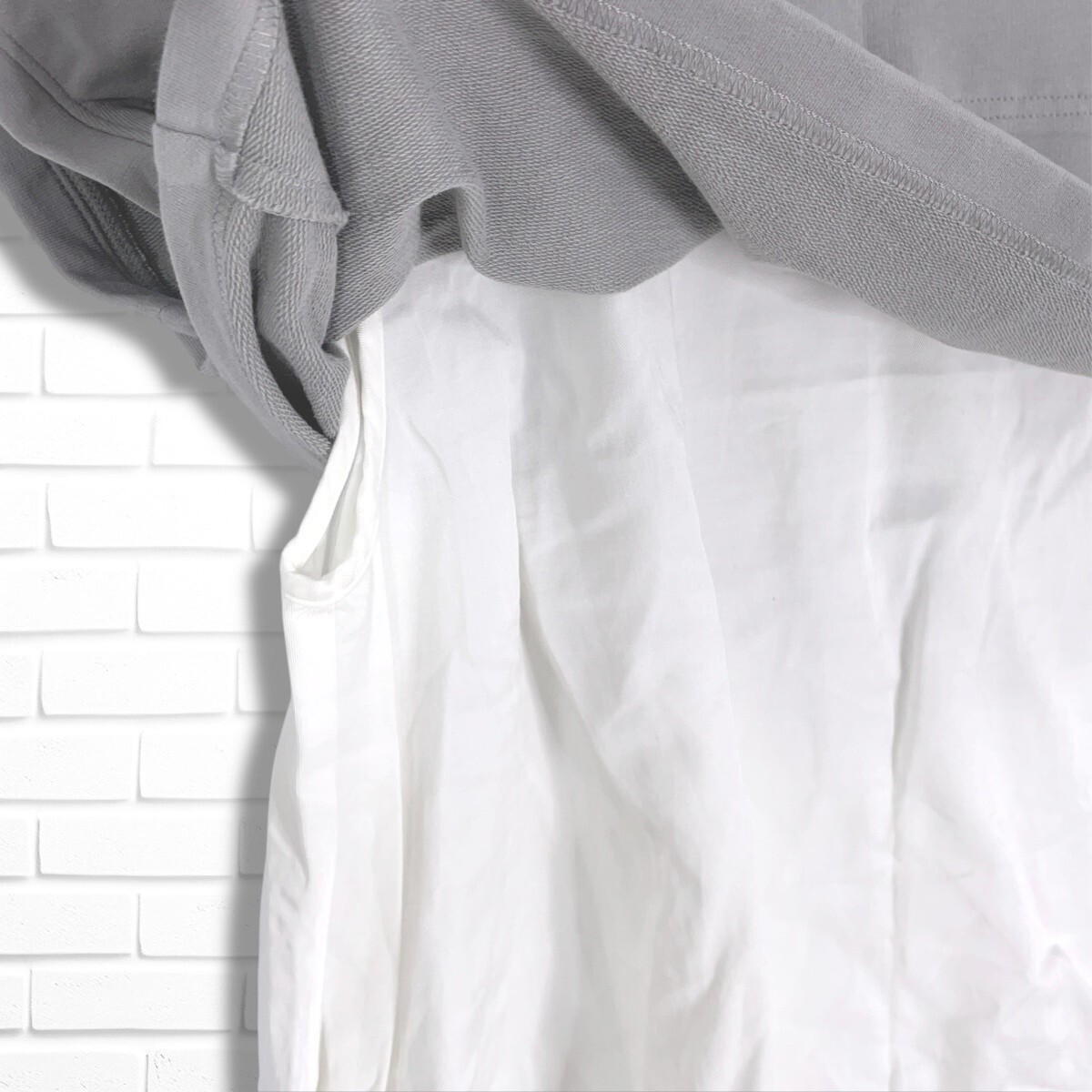 ◆良品◆ NEMIKA ネミカ レリアン レイヤード デザイン ゆったり♪ プルオーバー ブラウス トップス グレー × 白 ホワイト レディース ◆日本製 送料無料◆ 3035H◎