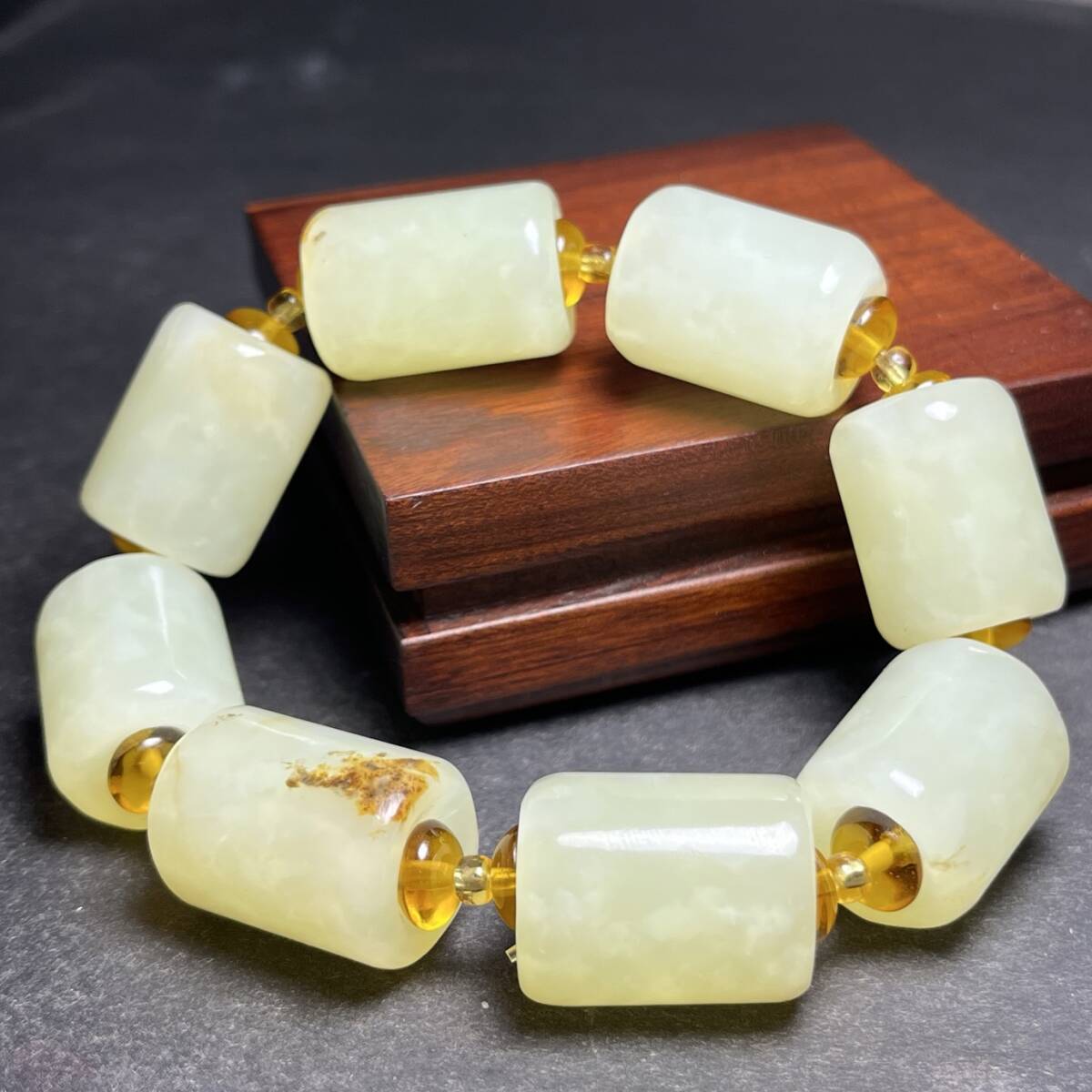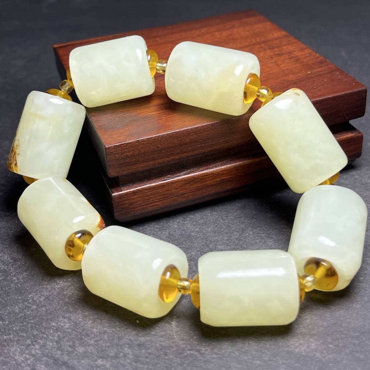 *珍品旧蔵* 明清時期 玉彫 和田玉 手鏈 極細工 古玩 骨董品 古美味 H48