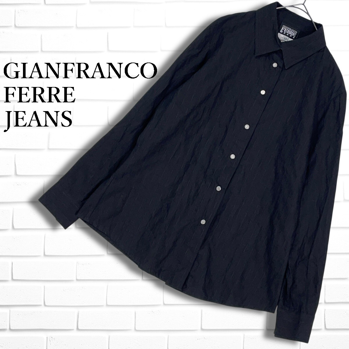 ◆美品◆ GIANFRANCO FERRE JEANS ジャンフランコフェレ ジーンズ ゆったり 長袖 シャツ ブラウス 黒 レディース XS イタリア製 2965H□