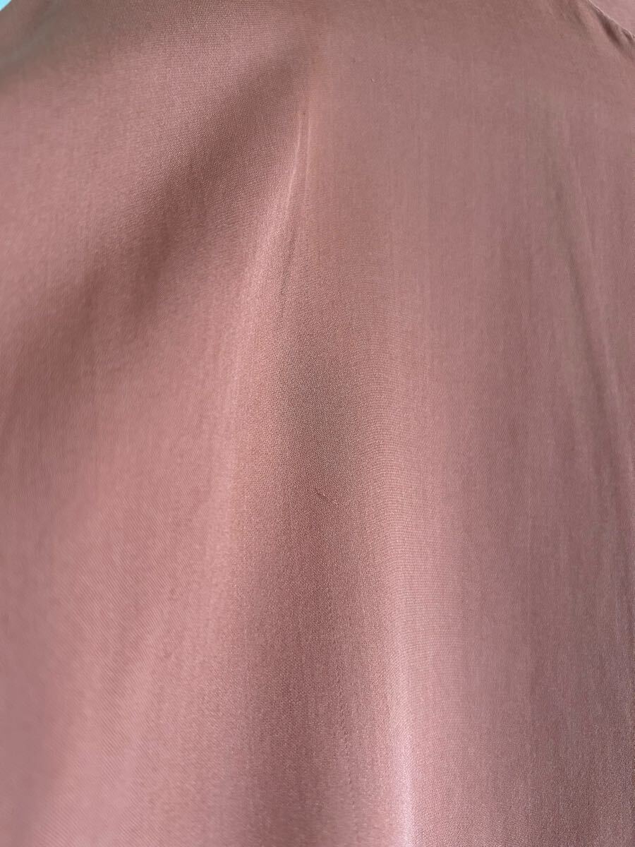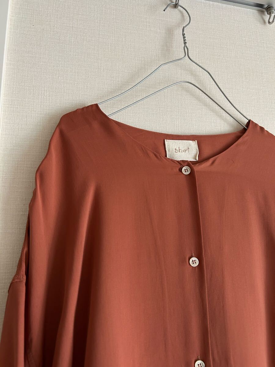 フォルテフォルテのブラウスです。ほんのり光沢のある生地で、ローズの混じったようなオレンジブラウンの色味です。ゆったりしており、さらっと着ていただくとおしゃれです。