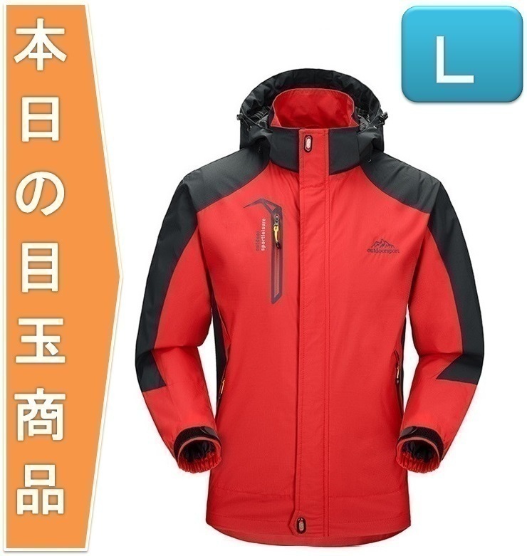 【本日の目玉】マウンテンパーカー アウトドア ジャケット ウィンドシェルジャケット アウター メンズ レディース Lサイズ 赤 レッド 151