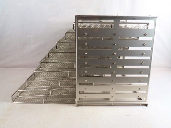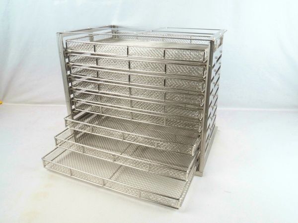 n1T250818Y ステンレス製 メッシュトレー トレイ キャビネット 引出 収納 ラック 乾燥棚 9段 幅410/奥行285/高さ346mm オーダーメイド品