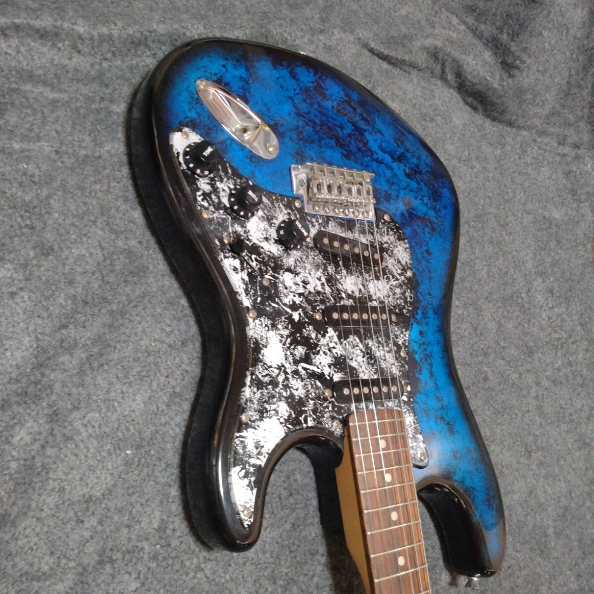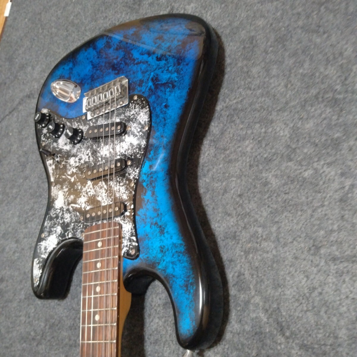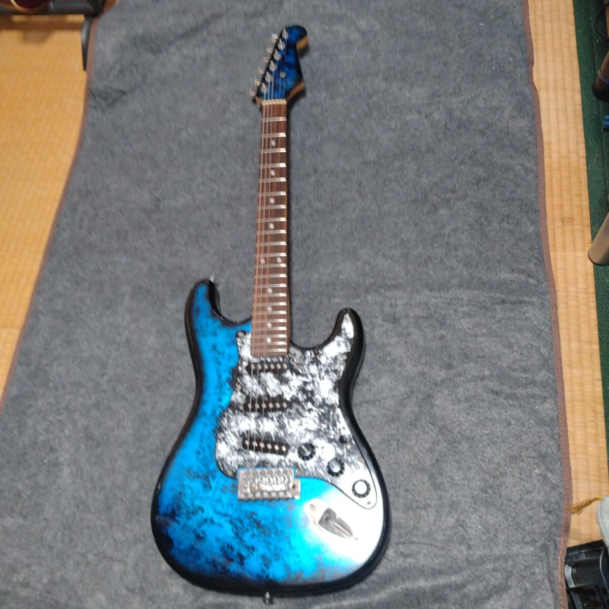 ノーブランドのエレキギターをDIYが趣味の鈑金塗装職人の手によりカスタムペイントされてます、唯一無二の1点物でございます