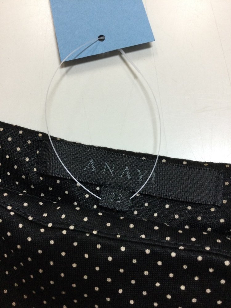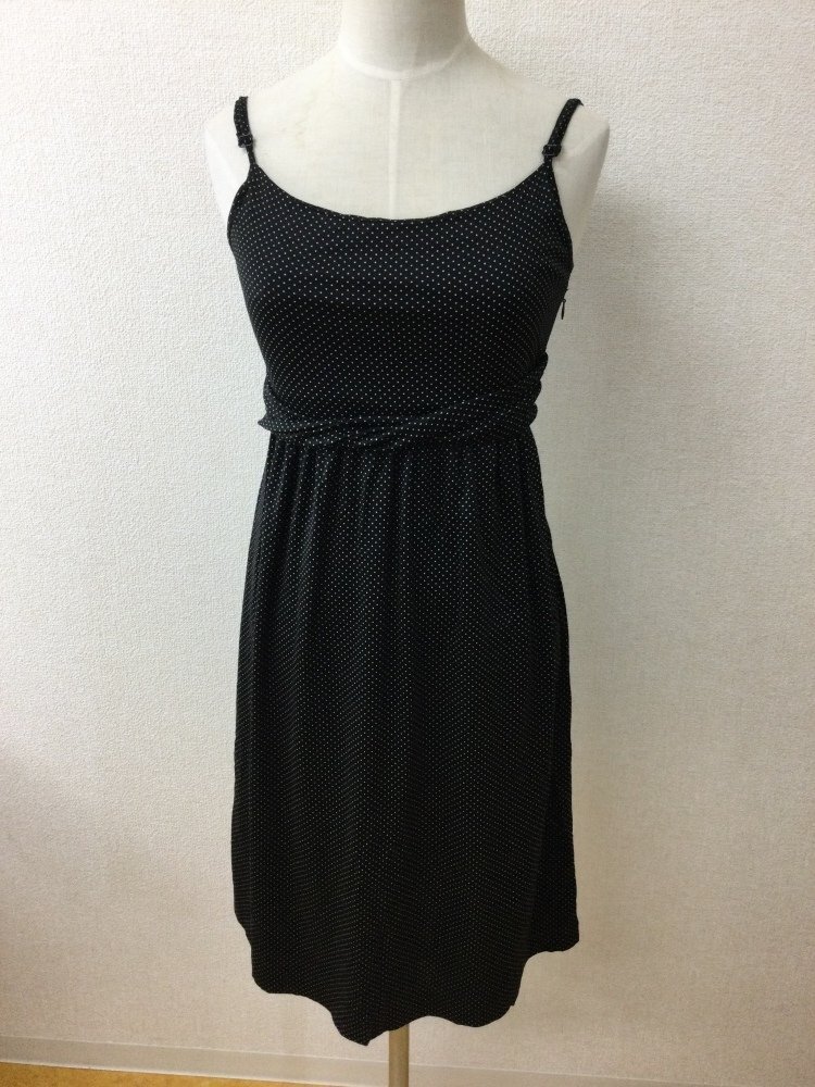 管理番号:10^133783 アナイ 黒にベージュドット カットソー生地ワンピ 表示サイズ:38 実寸(参考)