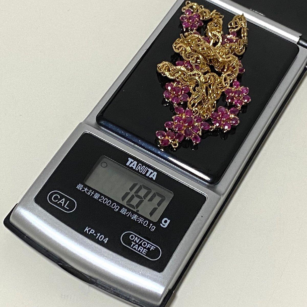 ☆鑑別書付き K18(18金) 天然コタンダム ルビー ネックレス 長さ約43.5cm 重量約18.7g【中古/USED】 | ||