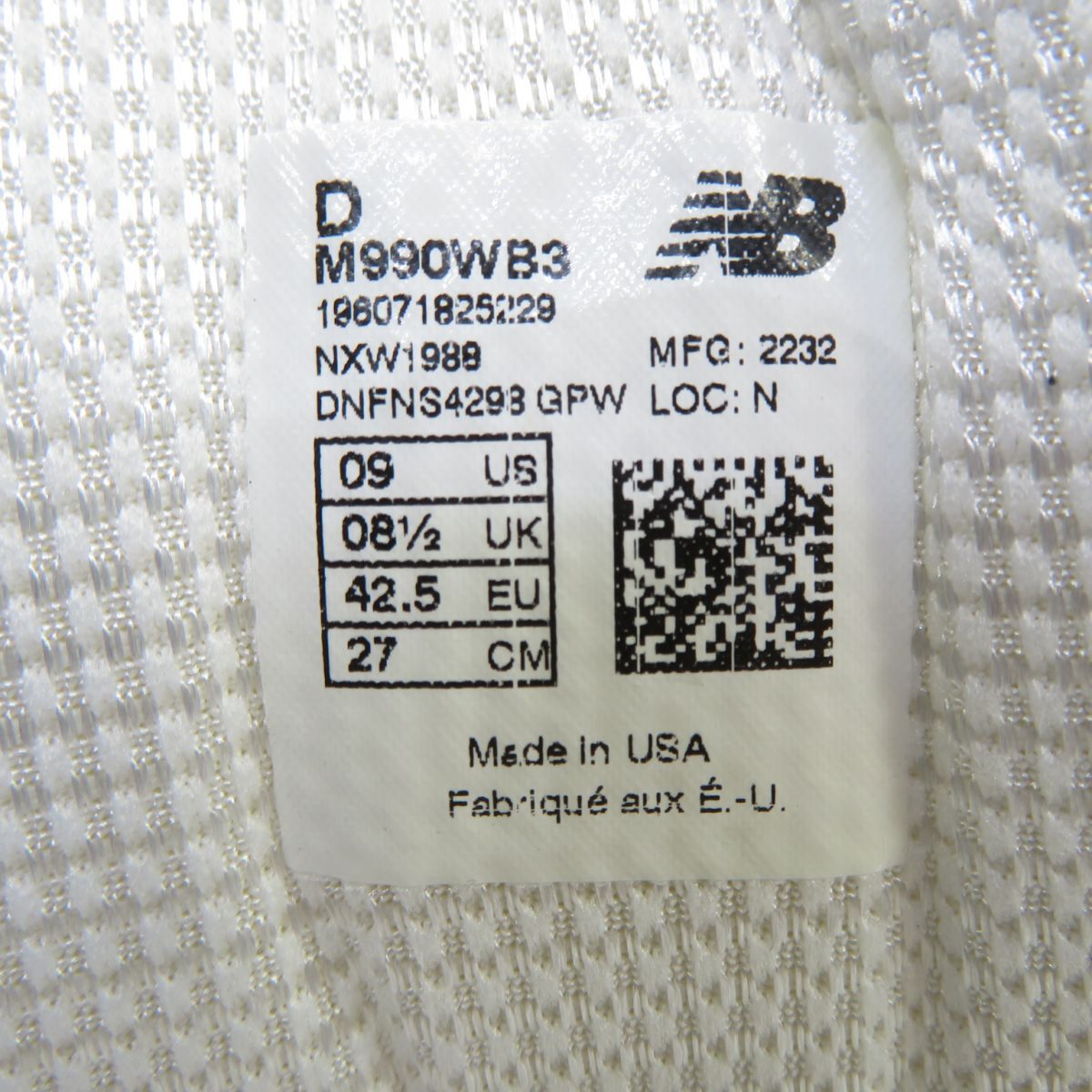 154s【未使用】NEW BALANCE ニューバランス M990WB3 US9/27cm 箱有 □付属品:外箱、タグ、替え紐 ※画像にあるもので全てです。 □型番:M990WB3 □サイズ:27cm □状態:未使用 ・タグ付きで使用された形跡が見られない為、未使用と判断しています。 ※保管による初期傷・汚れなどある場合が御座います。 未使用品ではありますが、二次流通品の新古品になります為、 完品をお求めの方はご購入をご遠慮くださいますようお願い致します。 ・外箱には保管に伴う日焼け変色、スレ、汚れ、キズ、ヘコミ等傷みが見受けられます。 ※モニターの環境により実物と画像の色が違うように見える場合があります。 |