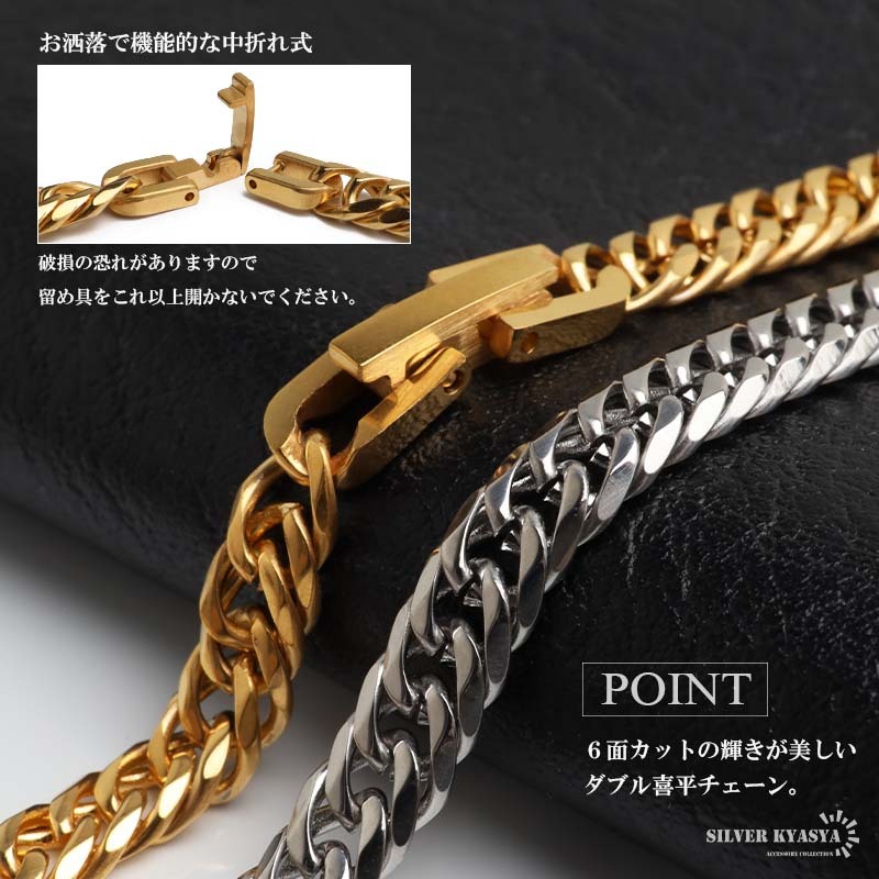 ダブル喜平チェーン:幅約5mm、厚み約2mm、全長:約50cm/約60cm