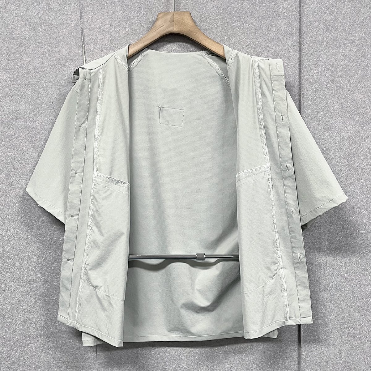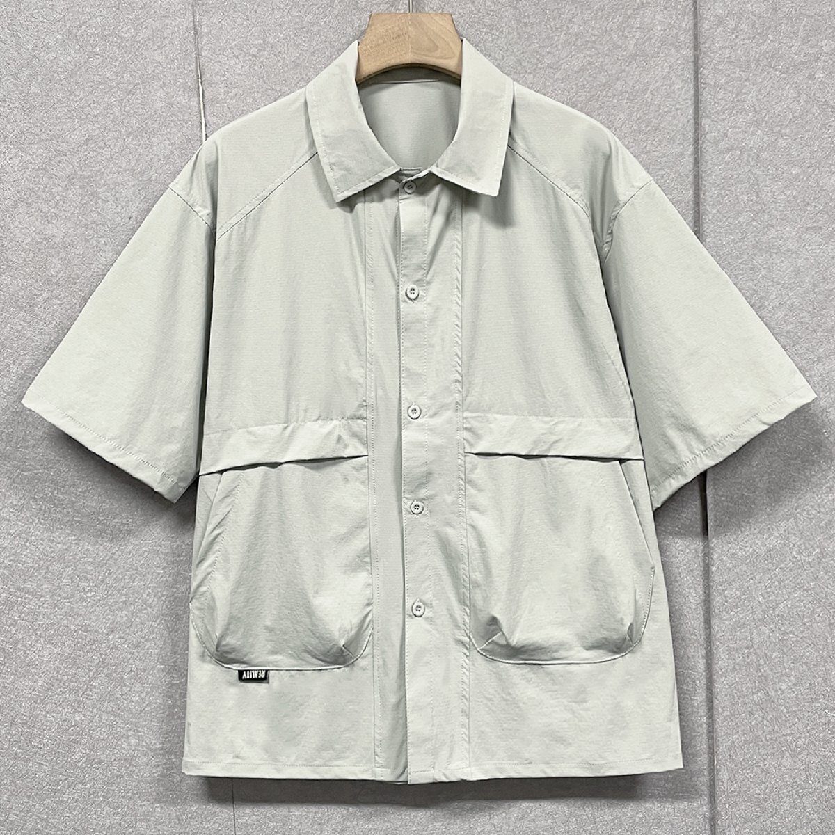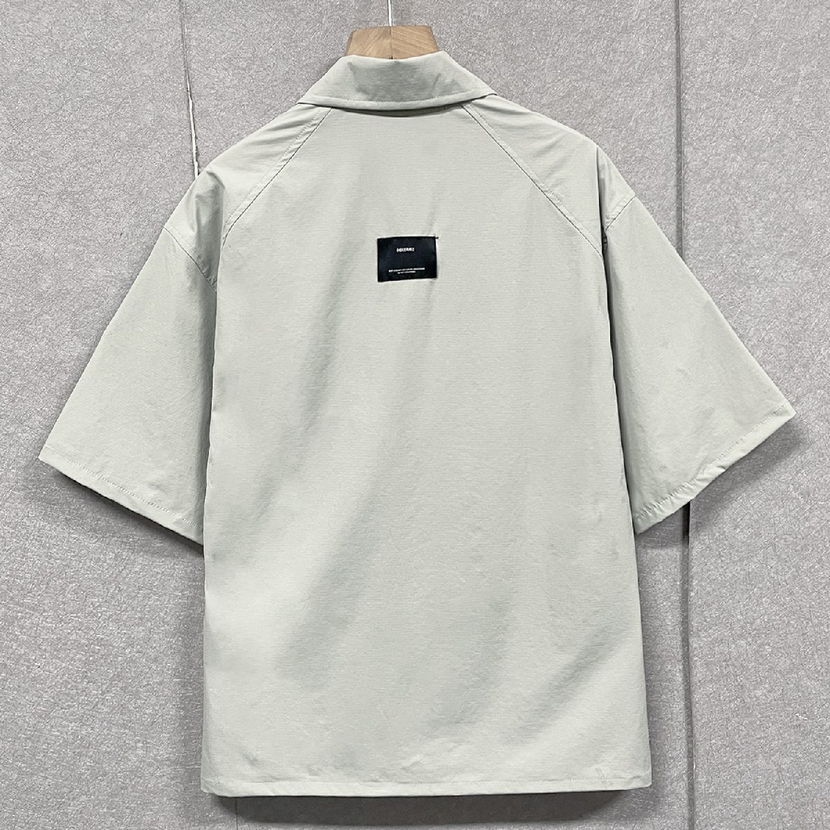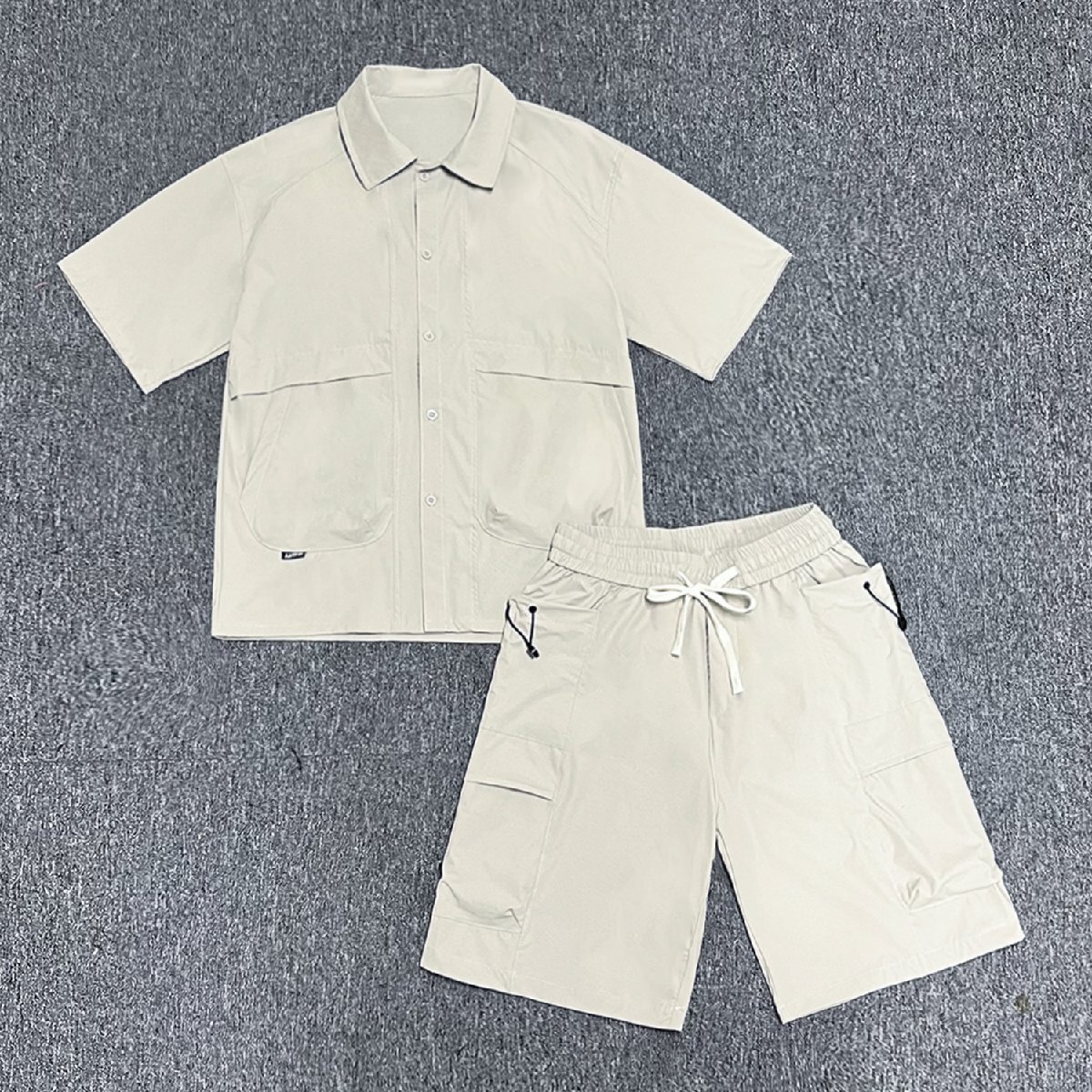 上下セット イタリア製造 高級 ポリアミド100% 通気 速乾 無地 折り襟 ゆったり 半袖シャツ ショートパンツ 2点セット 夏着 SIZE:2XL