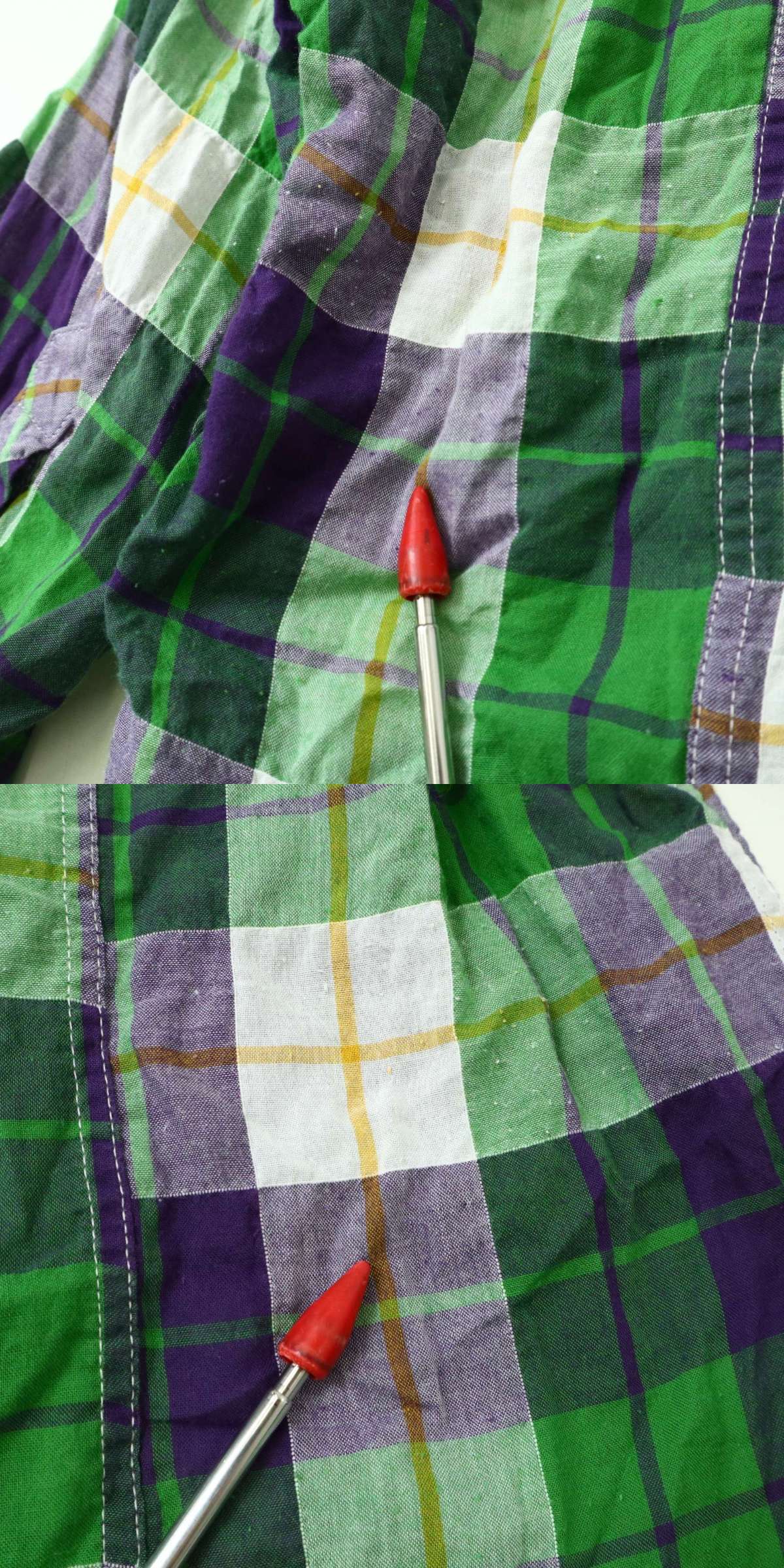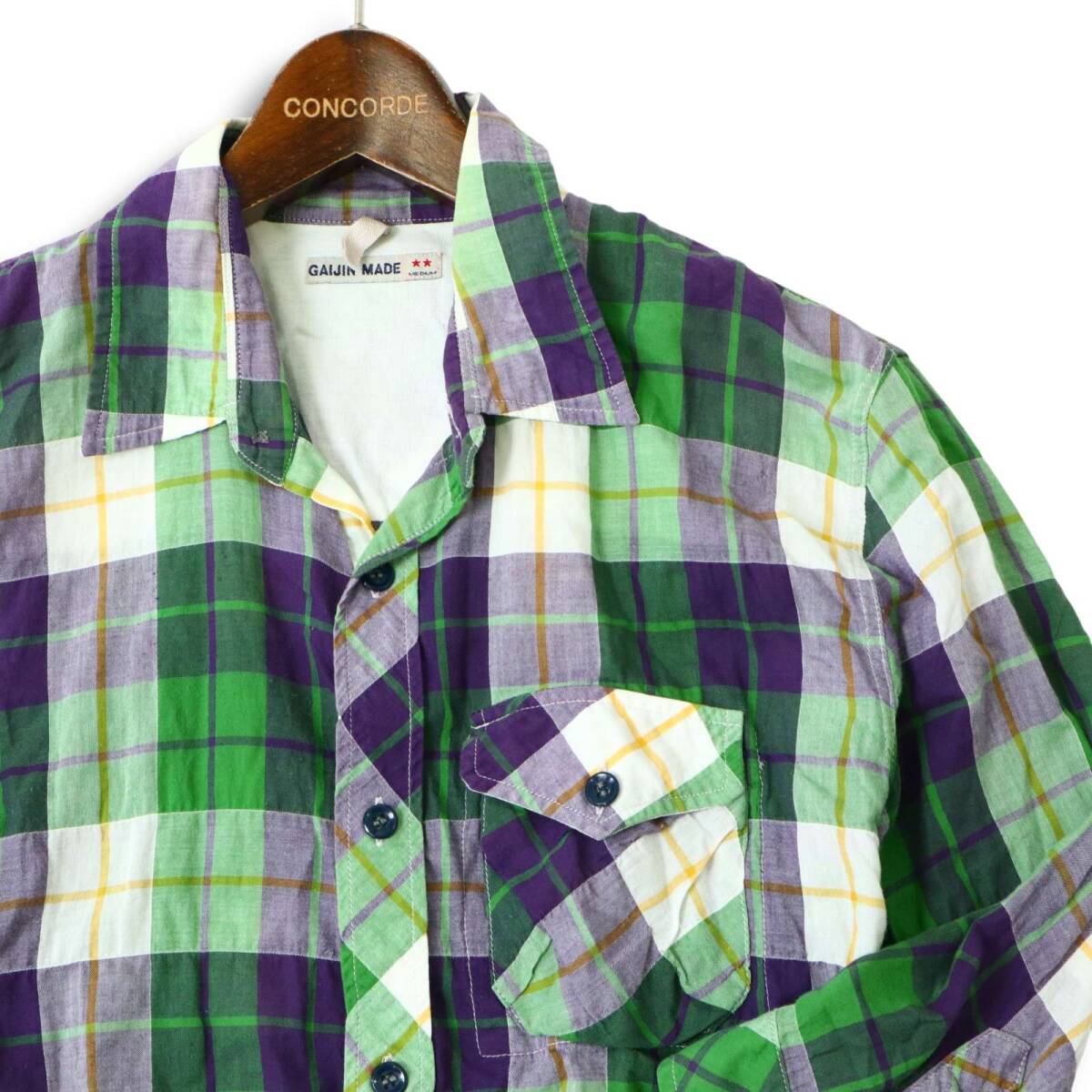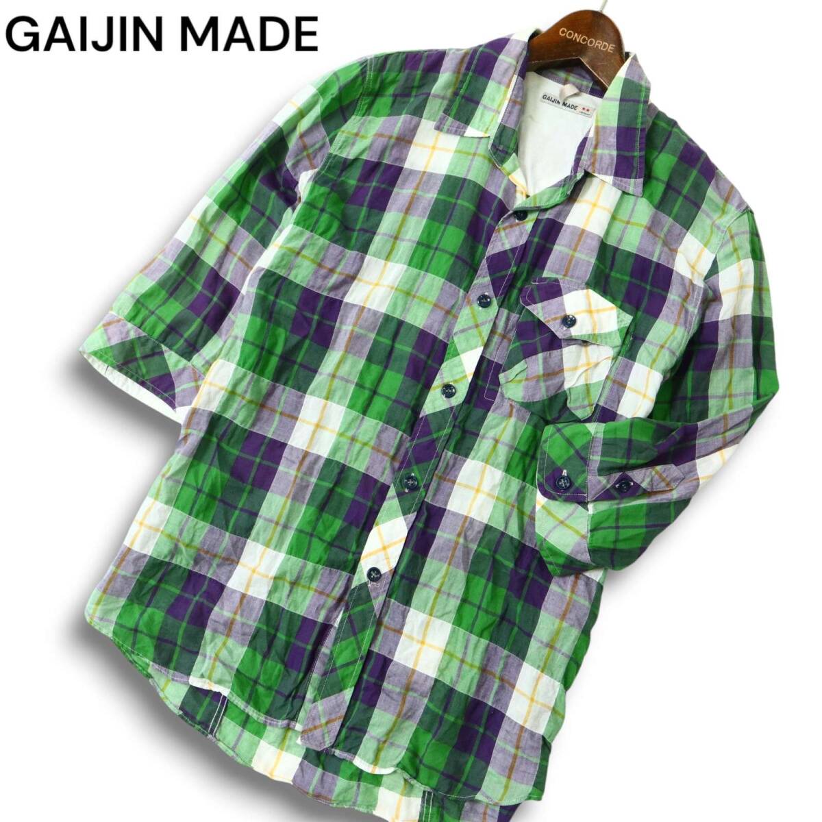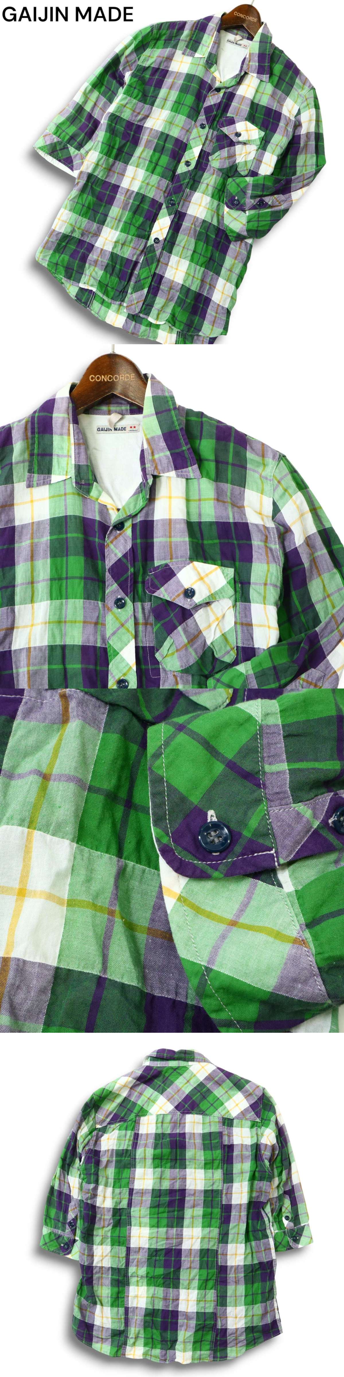 GAIJIN MADE ガイジンメイド ハリラン 春夏★ 7分袖 チェック シャツ Sz.2 メンズ 緑
