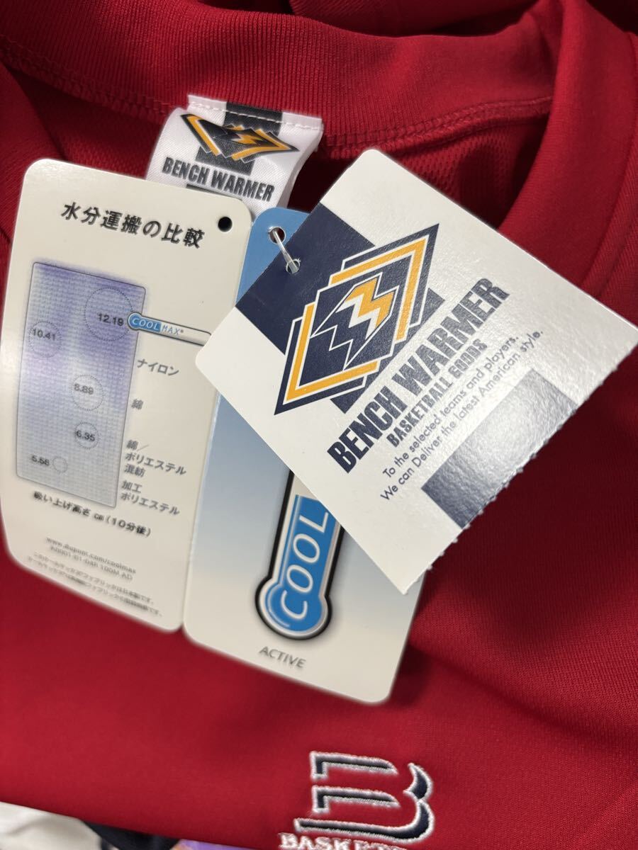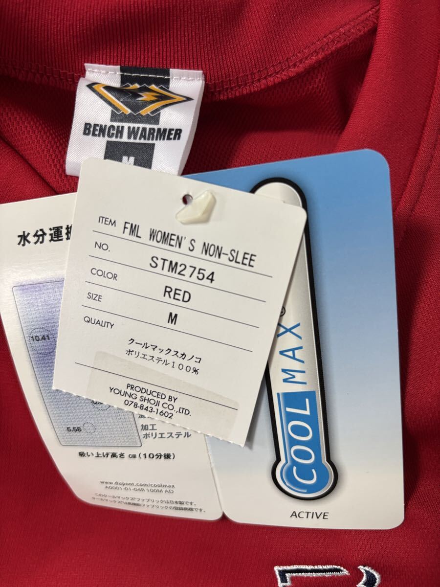 未使用タグ付 BENCH WARMER クールマックス バスケットボール ノースリーブシャツ 赤 Mサイズ Coolmax Basketball Sleeveless Shirt Red