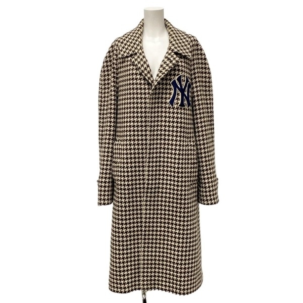 グッチ GUCCI サイズ50 XL 541125 Z439F ニューヨークヤンキース パッチ ハウンドトゥース コート ウール レディース コート