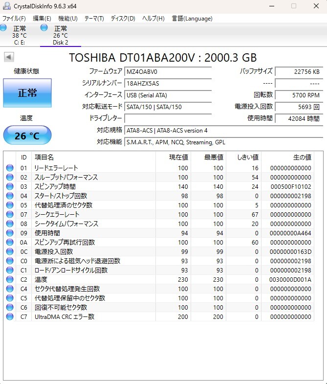 注:上記の確認を元に正常品とみなしています。 crystaldiskinfo以外での判定基準、相性問題で動作しない場合,使用用途に適さないといった場合での返品、返金には応じられません。