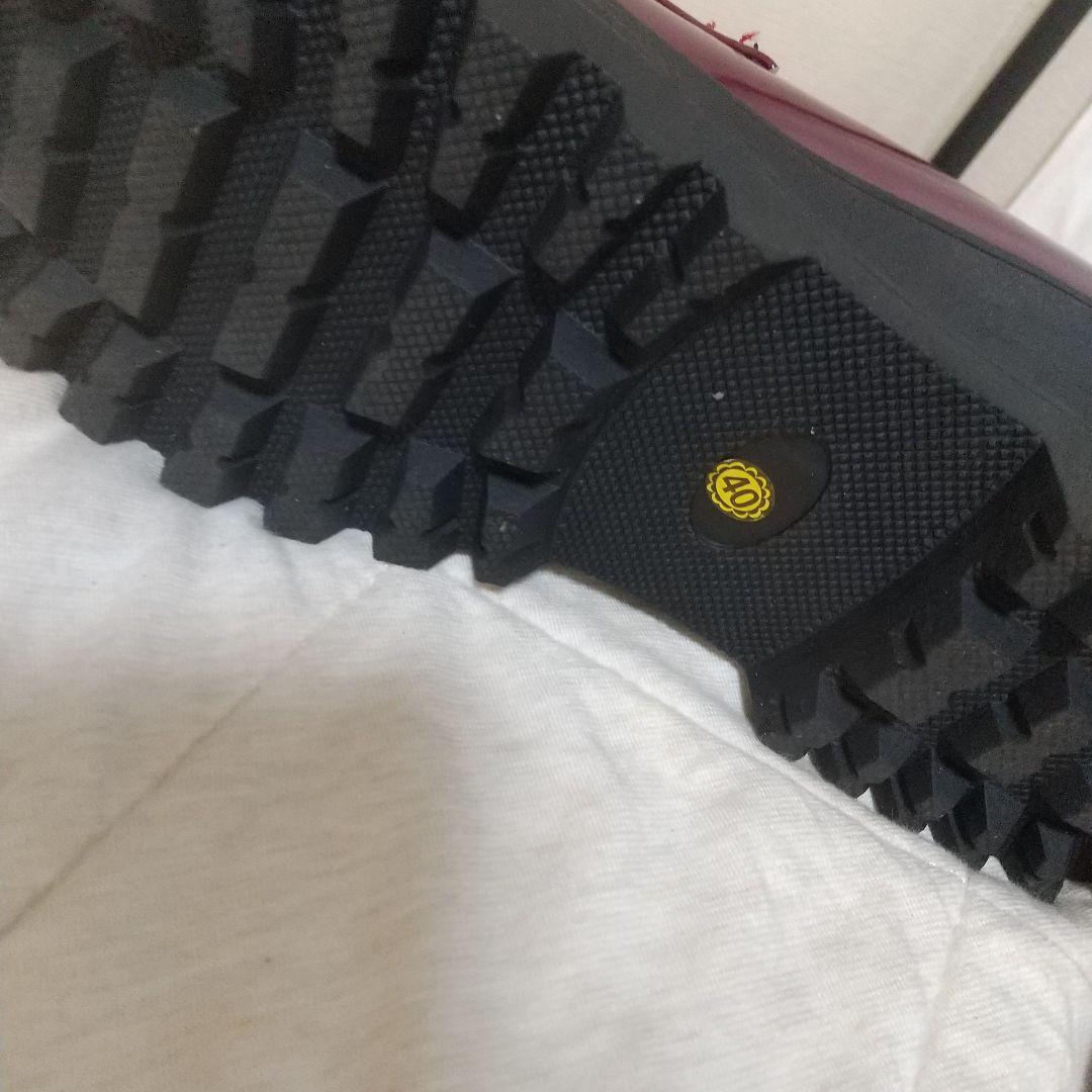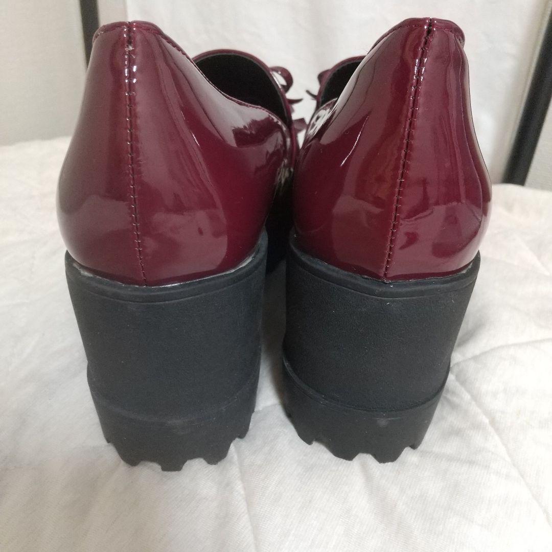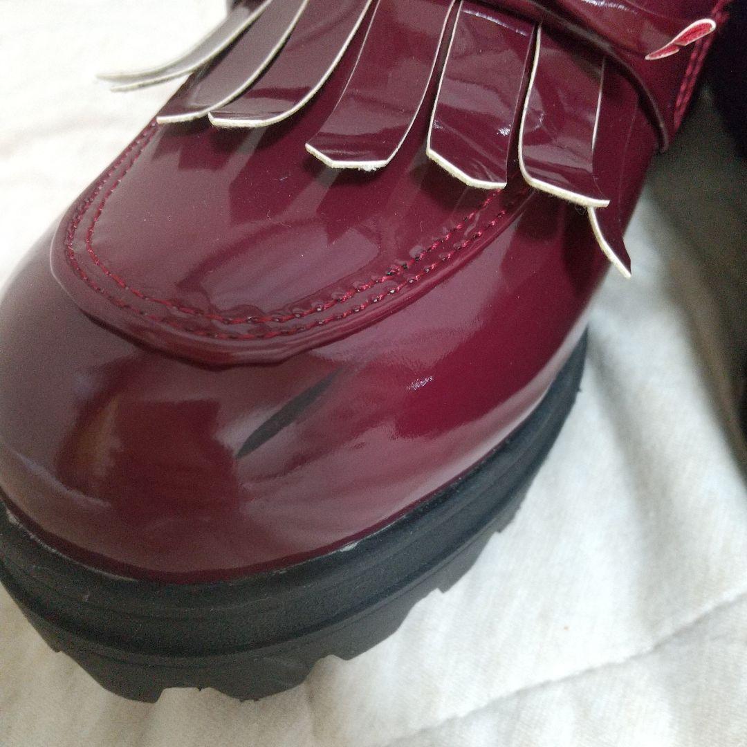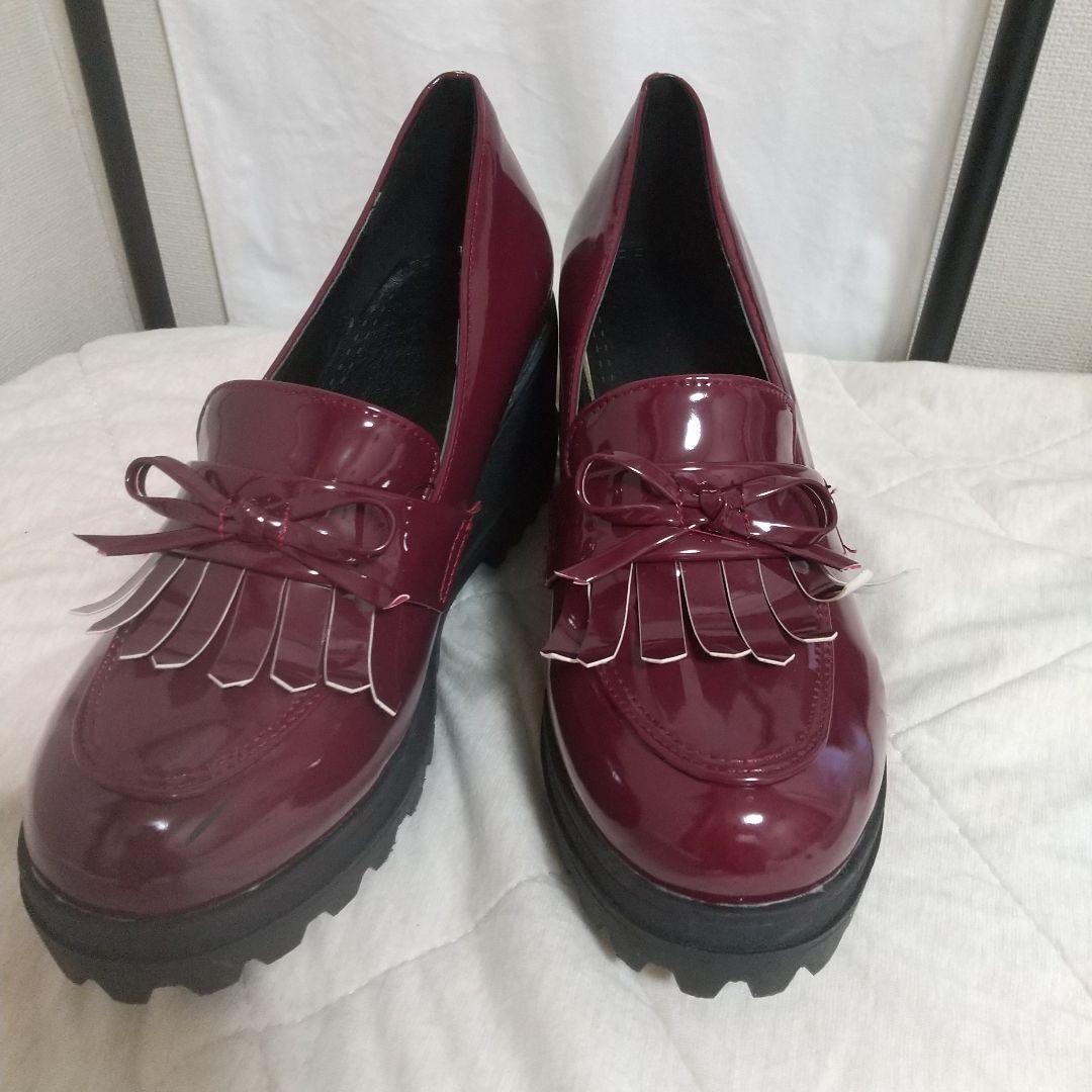 ★未着用 バーガンディ フリンジ付き厚底ローファー 傷有り a0400
