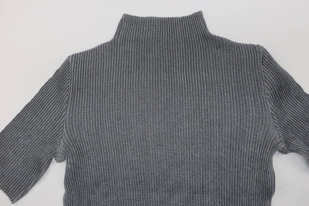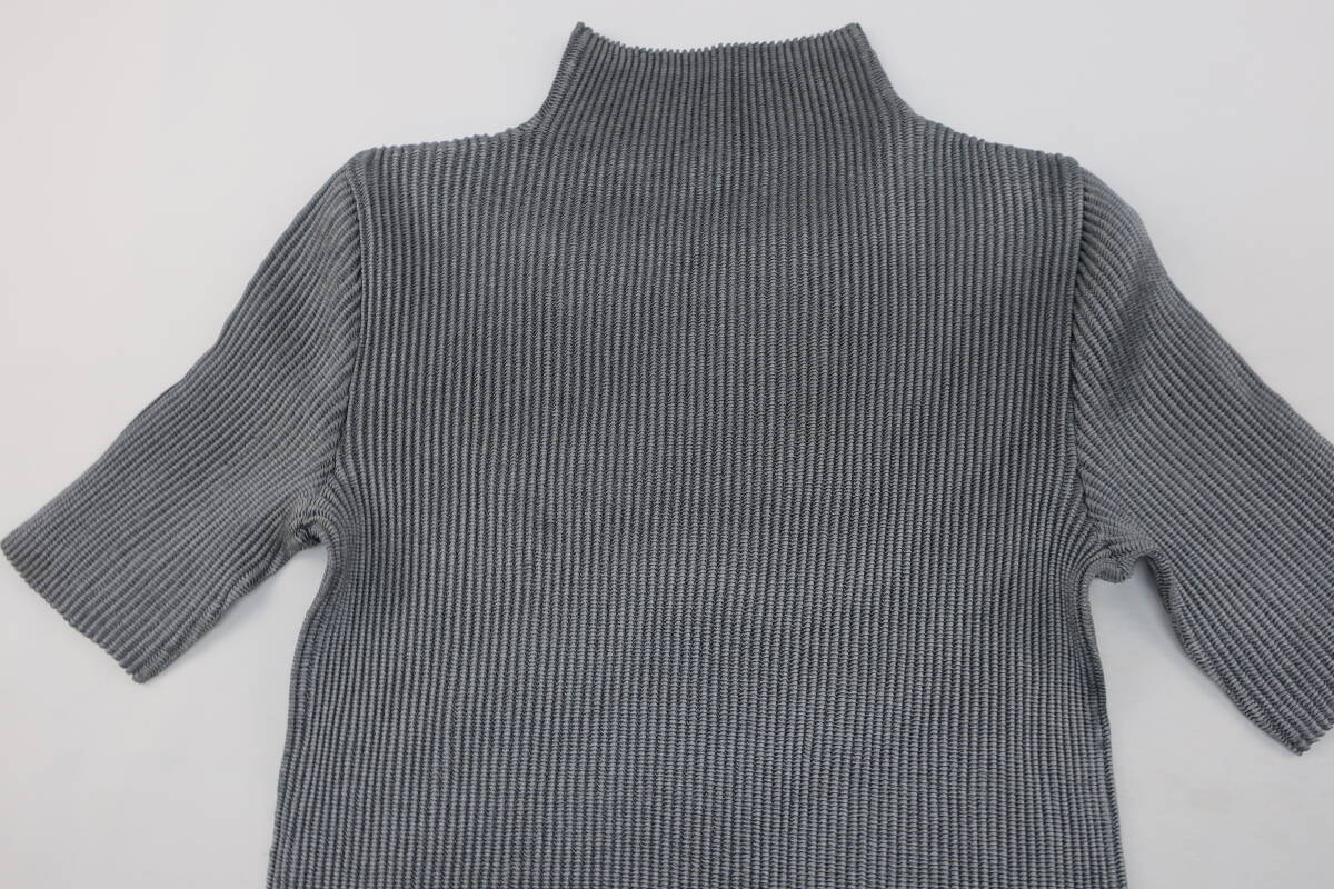 【送900円】480 SPECCHIO スペッチオ レディース ハイネックトップス カットソー 半袖 プリーツ ポリエステル100% グレー 40