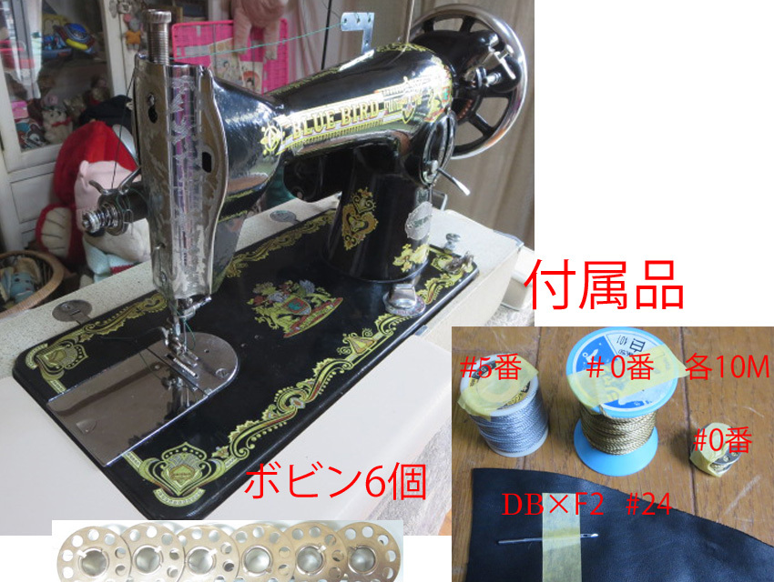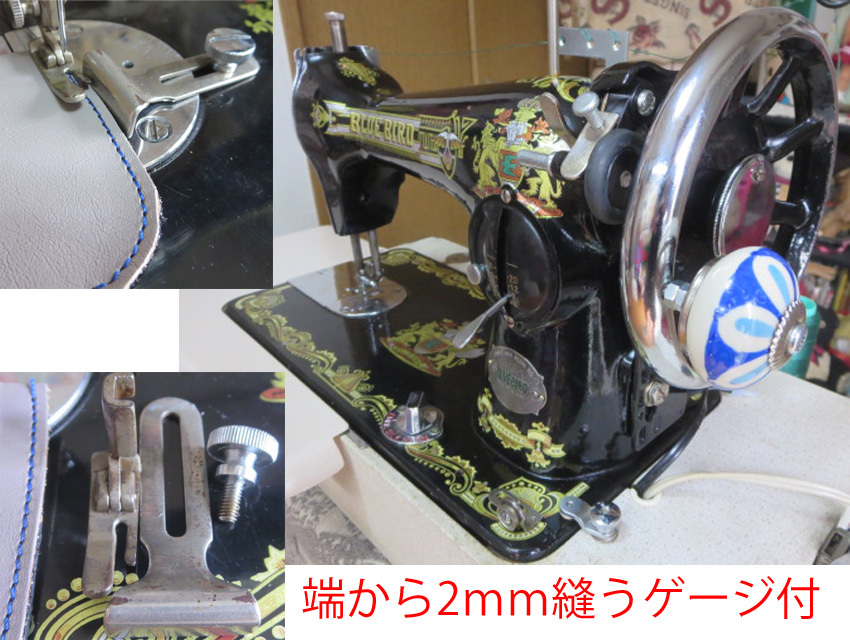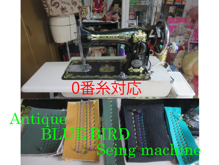 *アンティーク* 整備済み 0番糸対応 BLUE BIRD手回し/電動ミシン テーブル付き  レザークラフトにも