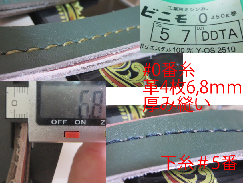 厚いヌメ革を手縫いのような感じで縫うことができます。