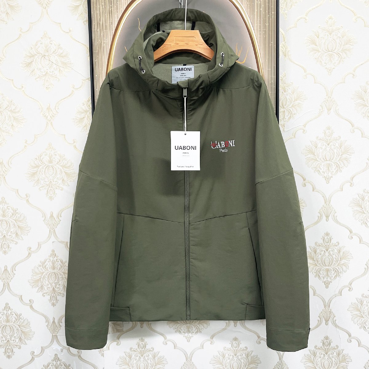 高機能EU製&定価7万◆UABONI*Paris*マウンテンパーカー*ユアボニ*パリ発◆防風 撥水 シック 無地 ジャケット 登山服 ゆったり ジャケット 2XL/52サイズ