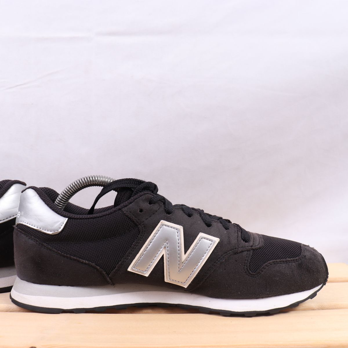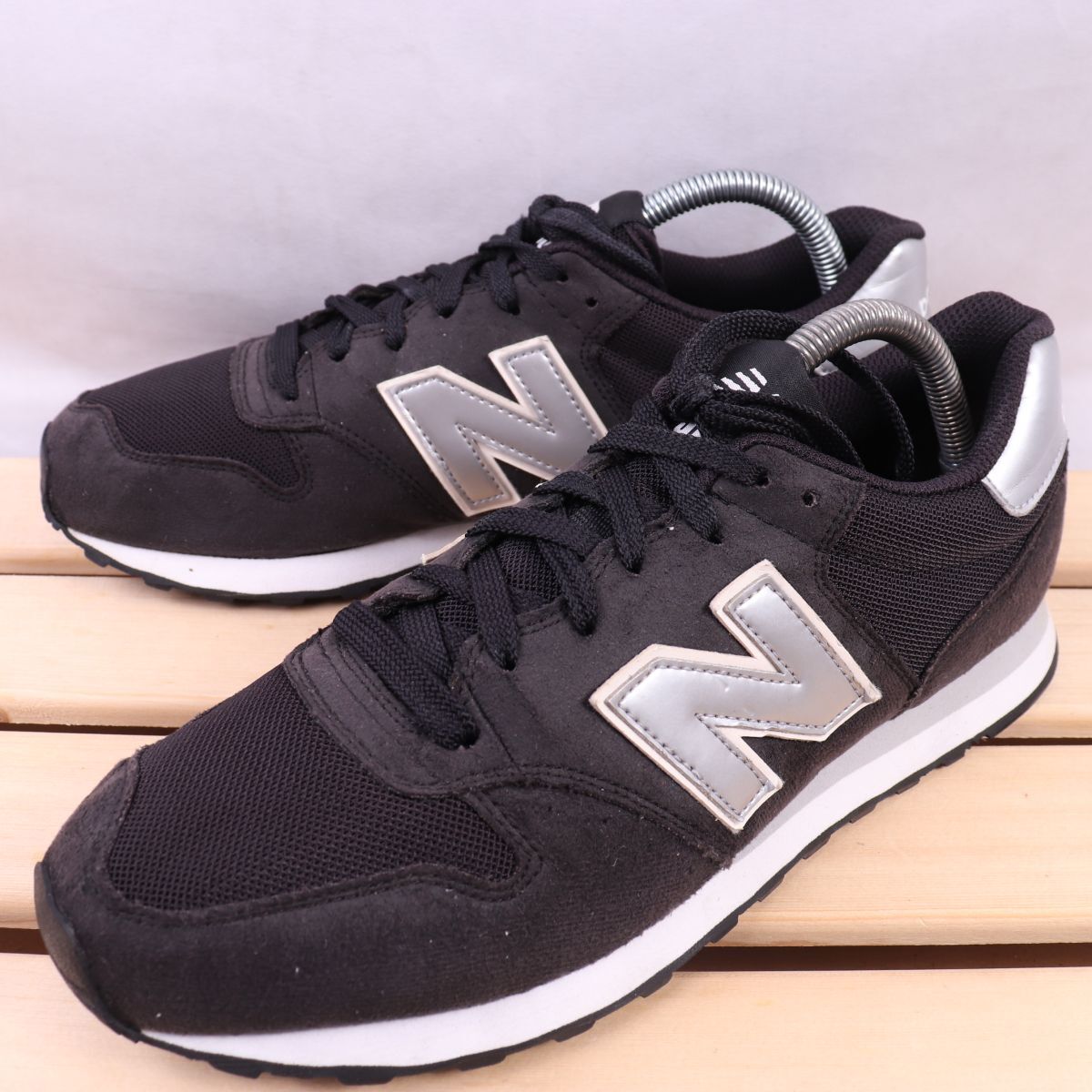 z1149【500】ニューバランス US7.5 25.5cm/黒 ブラック シルバー 白 ホワイト newbalance メンズ スニーカー 中古