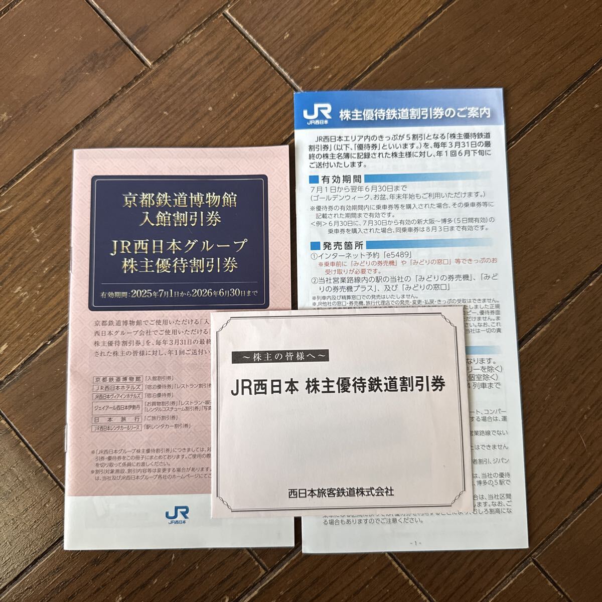 株主優待鉄道割引券1枚とJR西日本グループ株主優待割引券(京都鉄道博物館入館割引券を含む) 一冊