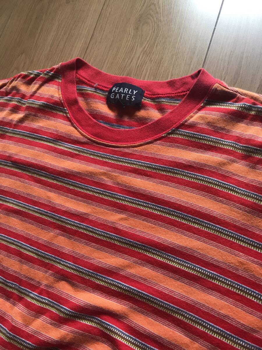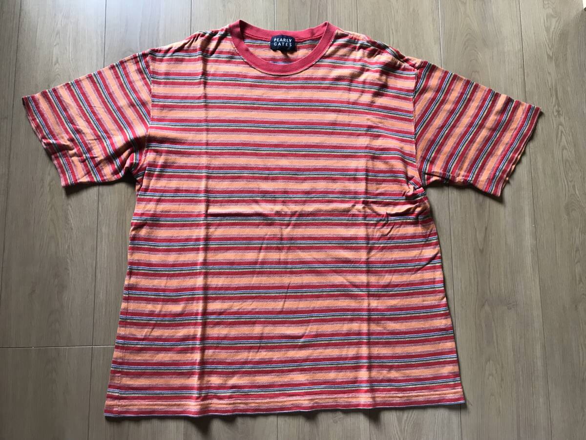 中古品格安スタート■PEARLYGATESパーリーゲイツ☆ボーダー柄半袖Tシャツ2赤オレンジ色