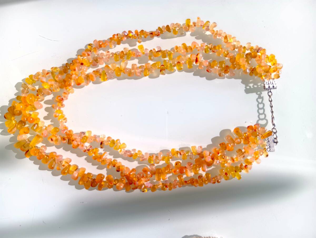 シトリン ネックレス 首飾り トパーズよりも美しい太陽のしずく 夕映え色 手元に有ります。3連 貴石 521.00カラット オレンジシトリン VK