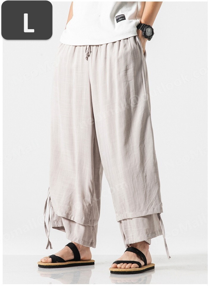 お買い得☆メンズ ワイドパンツ グレー L カジュアル ロングパンツ スウェット 無地 ポケット付 オールシーズン【066】