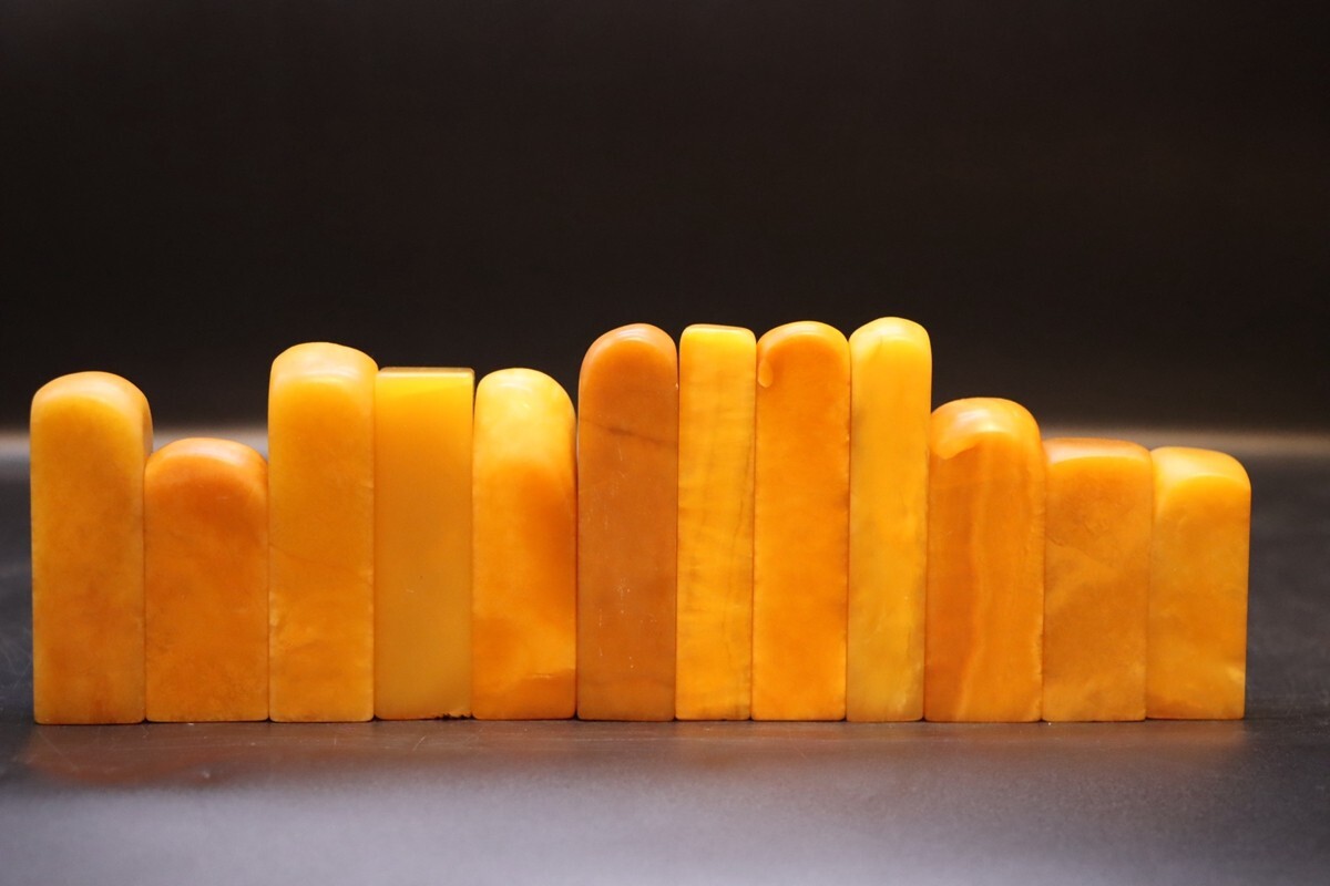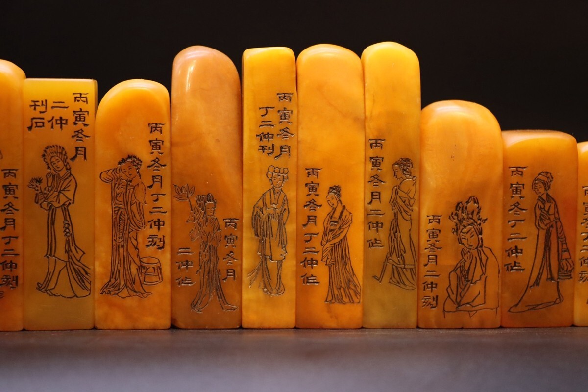 「清 二仲篆 老寿山石 田黄石彫り 十二金釵 印章 1セット」極細工 擺件 古賞物 中国古美術 旧蔵出