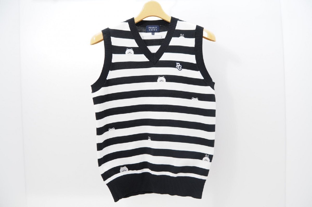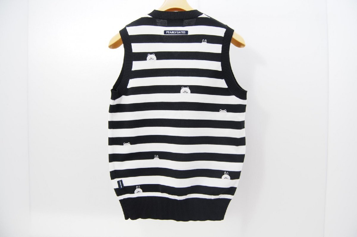 coco 中古【SALE】 パーリーゲイツ PEARLY GATES レディース ベスト 0(S) 黒×白 Vネック ボーダー LINEコラボ ネコパケ発送可 70881