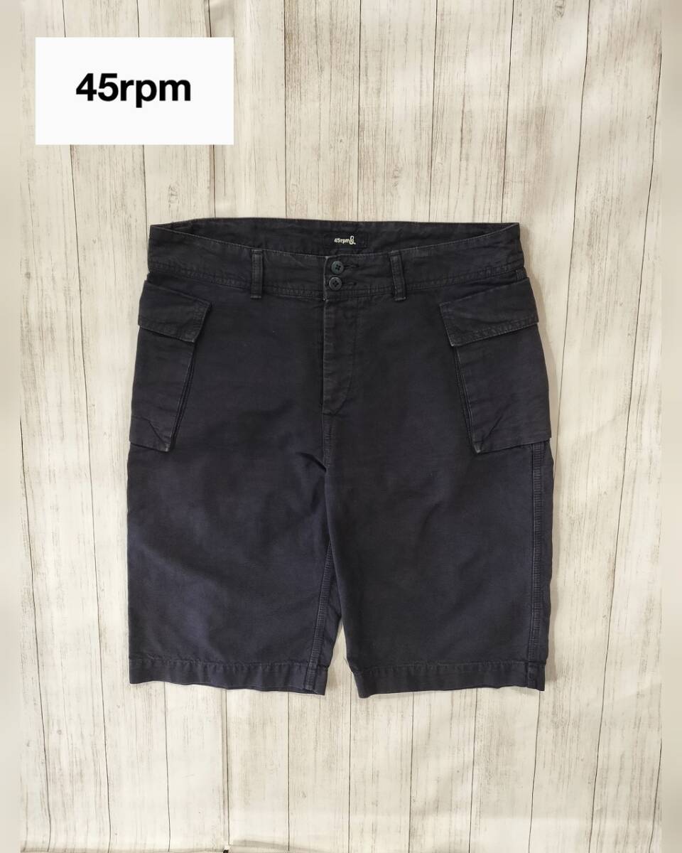 45rpm/フォーティーファイブアールピーエム/オーバーダイカーゴショーツ/ショートパンツ/製品染め/ナス紺系ネイビー/刺繍ロゴ/SIZE 4
