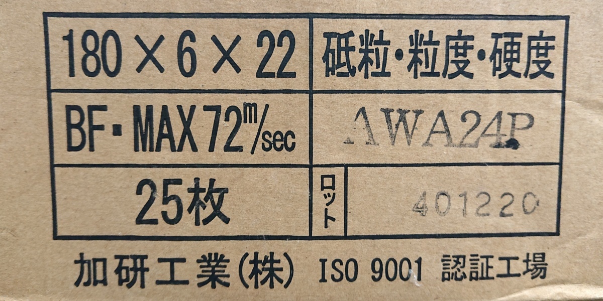 未使用品【 加研工業 / KAKEN 】 AWA24P 砥石 ハイカット 180×6×22㎜ スタンダード 25枚入