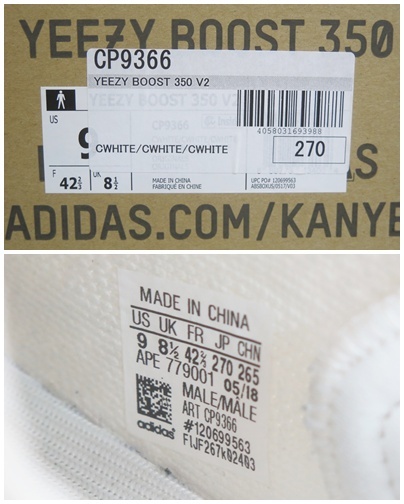 adidas アディダス CP9366 YEEZY Boost 350 V2 Cream White スニーカー 27㎝
