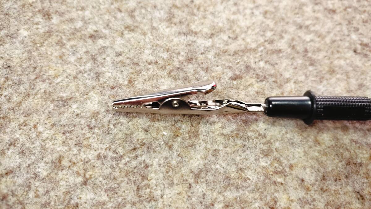 テスターピンの先にワニ口クリップをつける アダプターです。