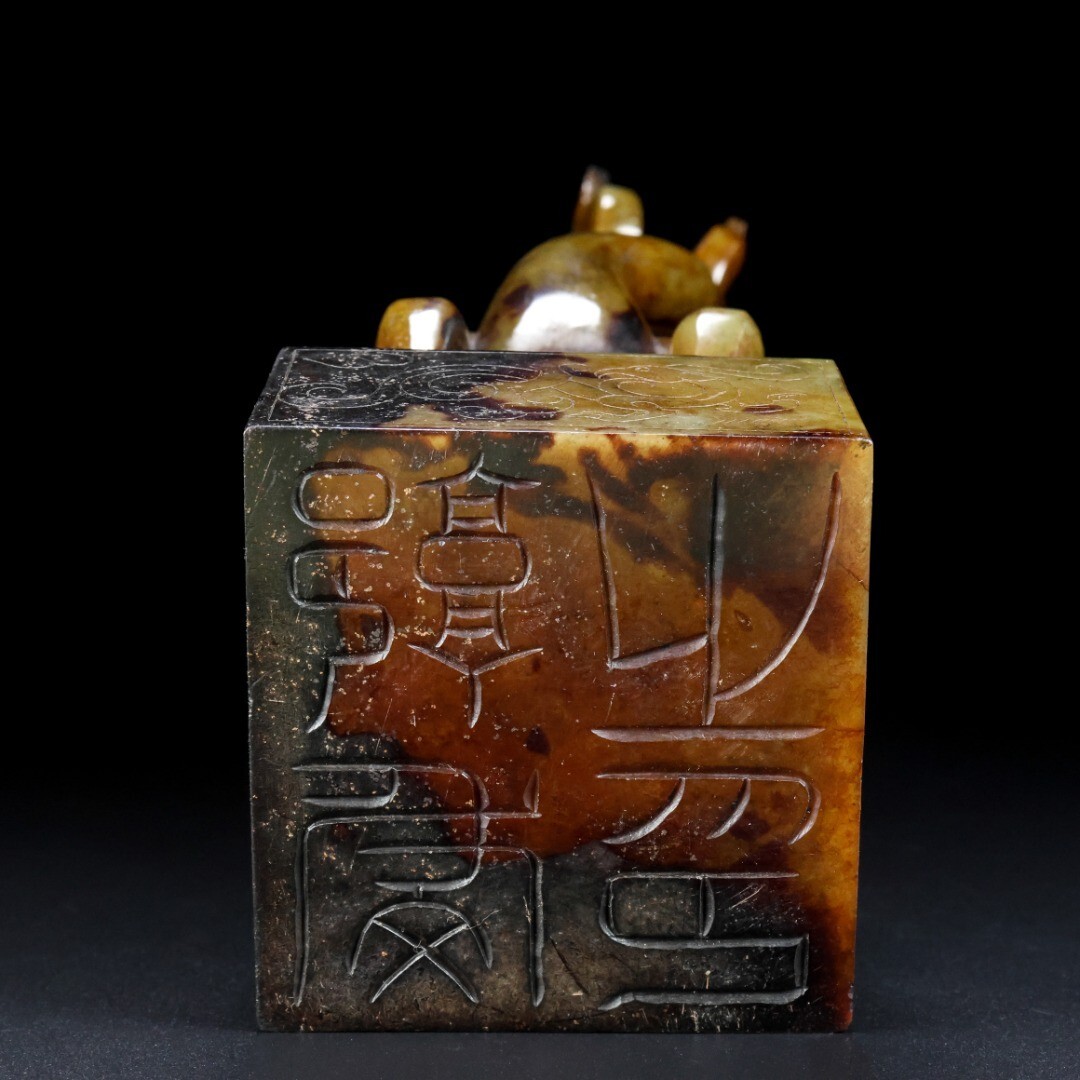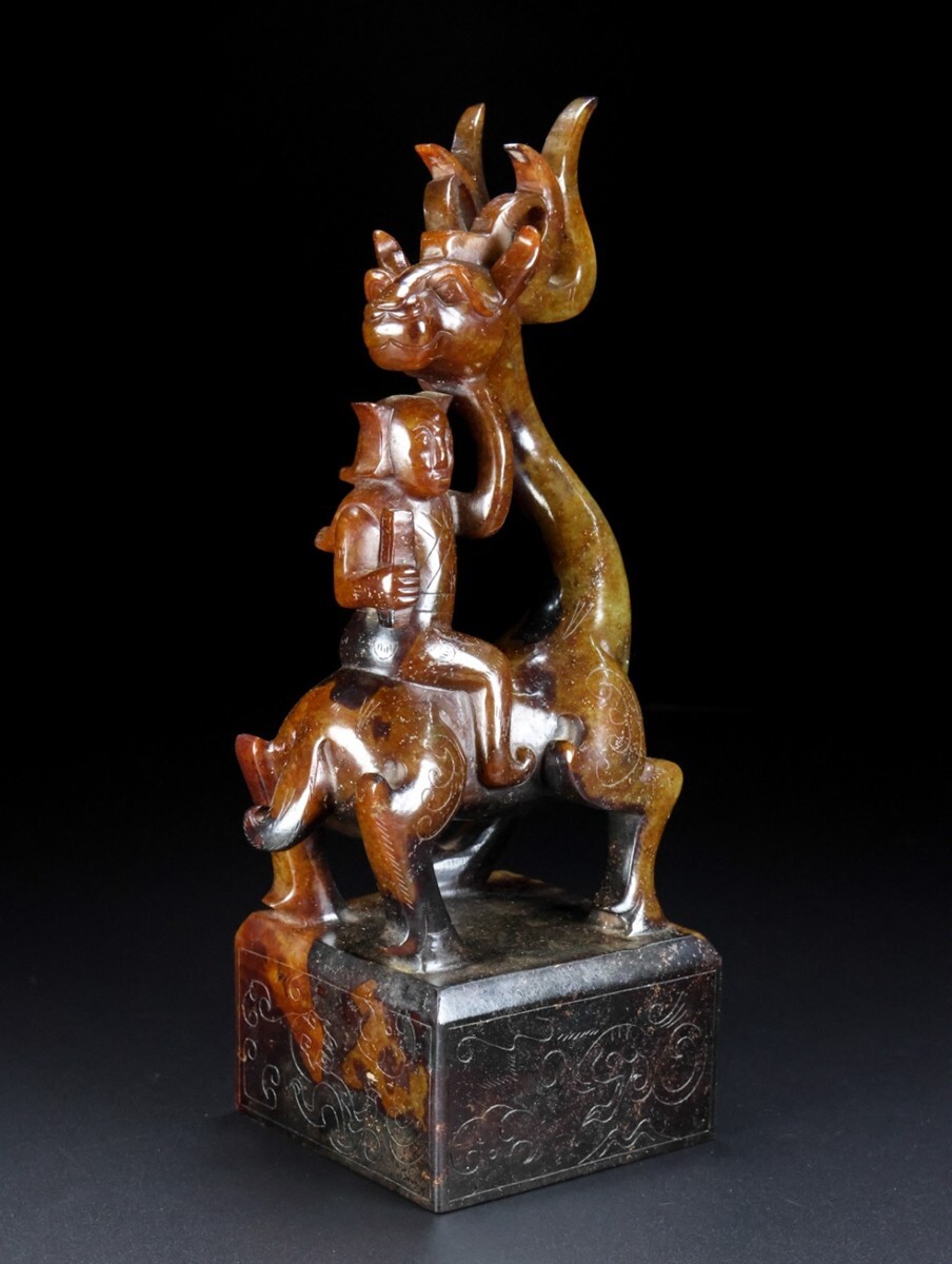 【瓏】和田玉 高古玉彫 仙人指鹿 印章 時代物 極細工 手彫り 置物擺件 中国古賞物 古美術 蔵出
